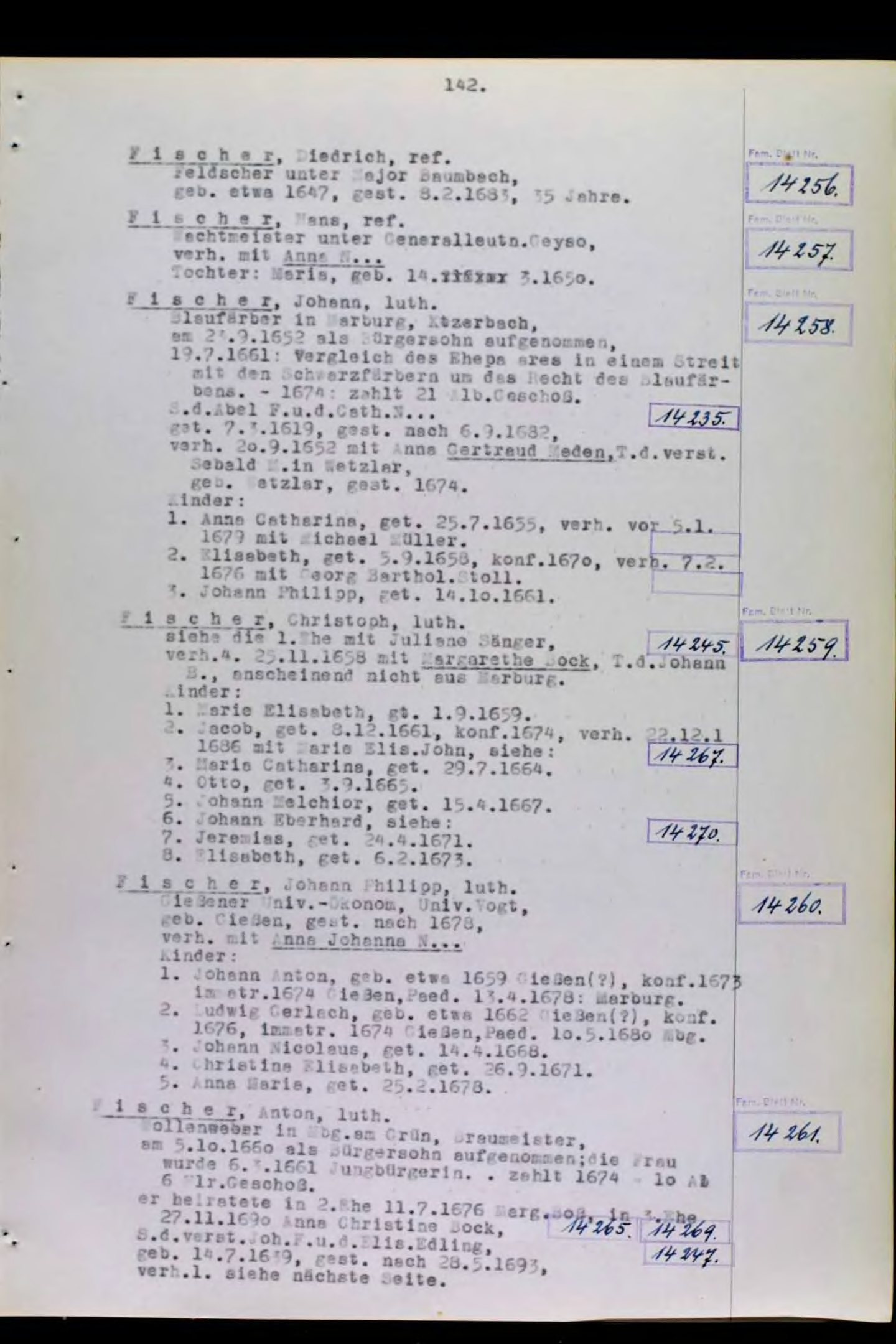 | Seit Fertigstellung des Marburger Sippenbuches 1950-1966 sind zahlreiche Ergänzungen und auch notwendige Korrekturen bekannt geworden. Zur aktuellen Seite existiert noch keine Ergänzunges- und Korrekturseite. Wenn Sie selbst Ergänzungen vornehmen möchten, wenden Sie sich bitte an Benutzer:Ernestus. |
