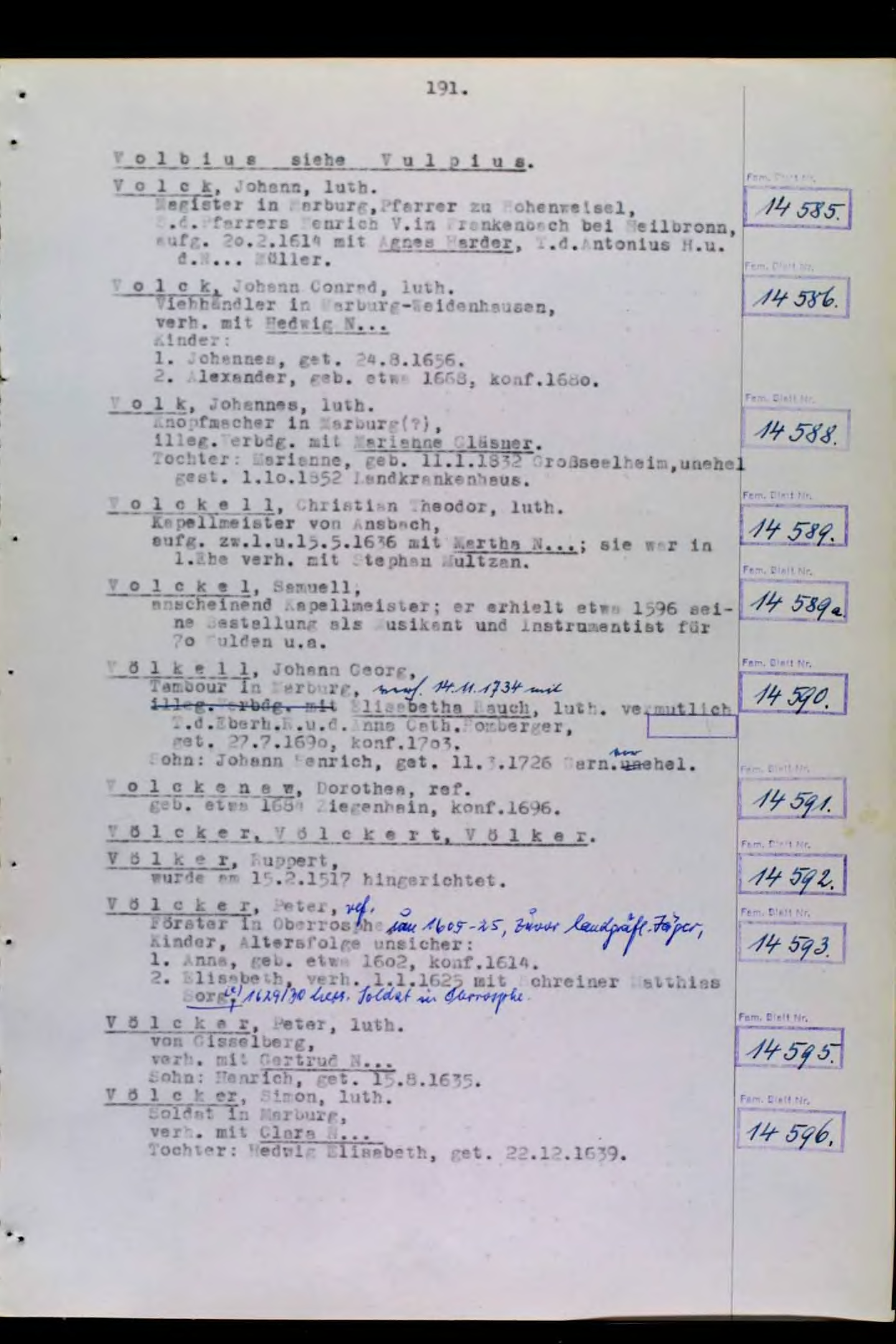 | Seit Fertigstellung des Marburger Sippenbuches 1950-1966 sind zahlreiche Ergänzungen und auch notwendige Korrekturen bekannt geworden. Zur aktuellen Seite existiert noch keine Ergänzunges- und Korrekturseite. Wenn Sie selbst Ergänzungen vornehmen möchten, wenden Sie sich bitte an Benutzer:Ernestus. |