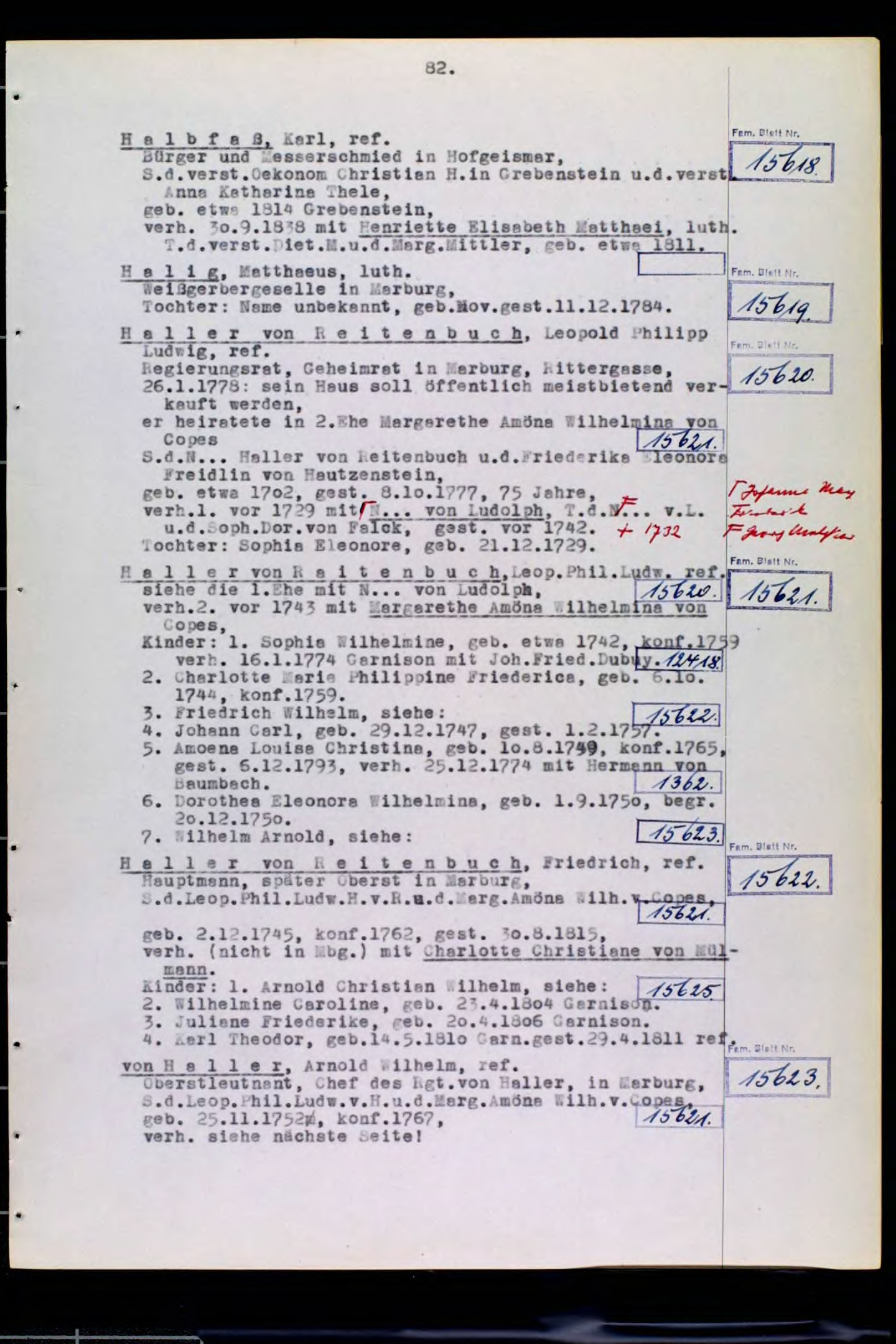 Info non-talk.svg Seit Fertigstellung des Marburger Sippenbuches 1950-1966 sind zahlreiche Ergänzungen und auch notwendige Korrekturen bekannt geworden. Zur aktuellen Seite existiert noch keine Ergänzunges- und Korrekturseite. Wenn Sie selbst Ergänzungen vornehmen möchten, wenden Sie sich bitte an Benutzer:Ernestus.
