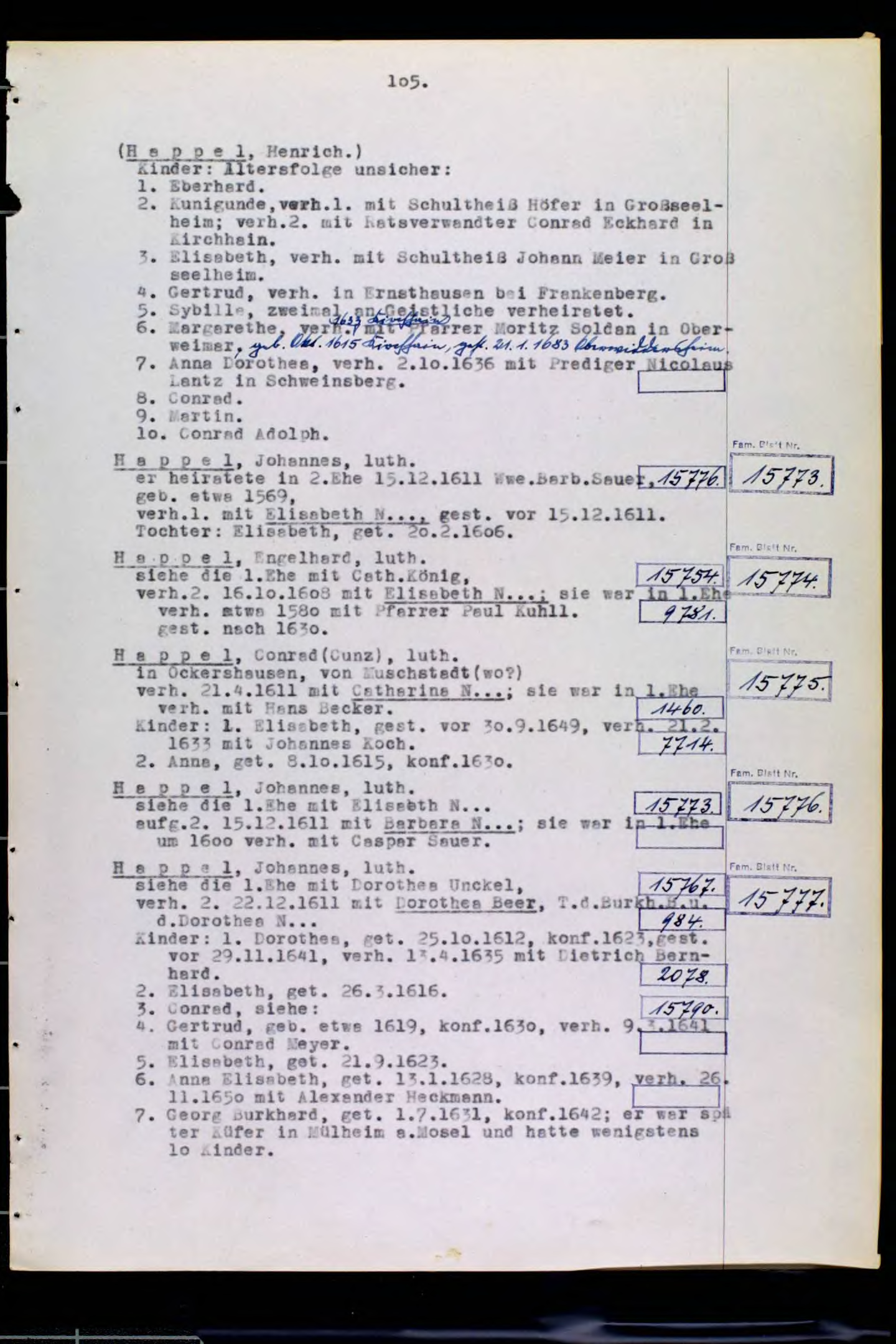 Info non-talk.svg Seit Fertigstellung des Marburger Sippenbuches 1950-1966 sind zahlreiche Ergänzungen und auch notwendige Korrekturen bekannt geworden. Zur aktuellen Seite existiert noch keine Ergänzunges- und Korrekturseite. Wenn Sie selbst Ergänzungen vornehmen möchten, wenden Sie sich bitte an Benutzer:Ernestus.