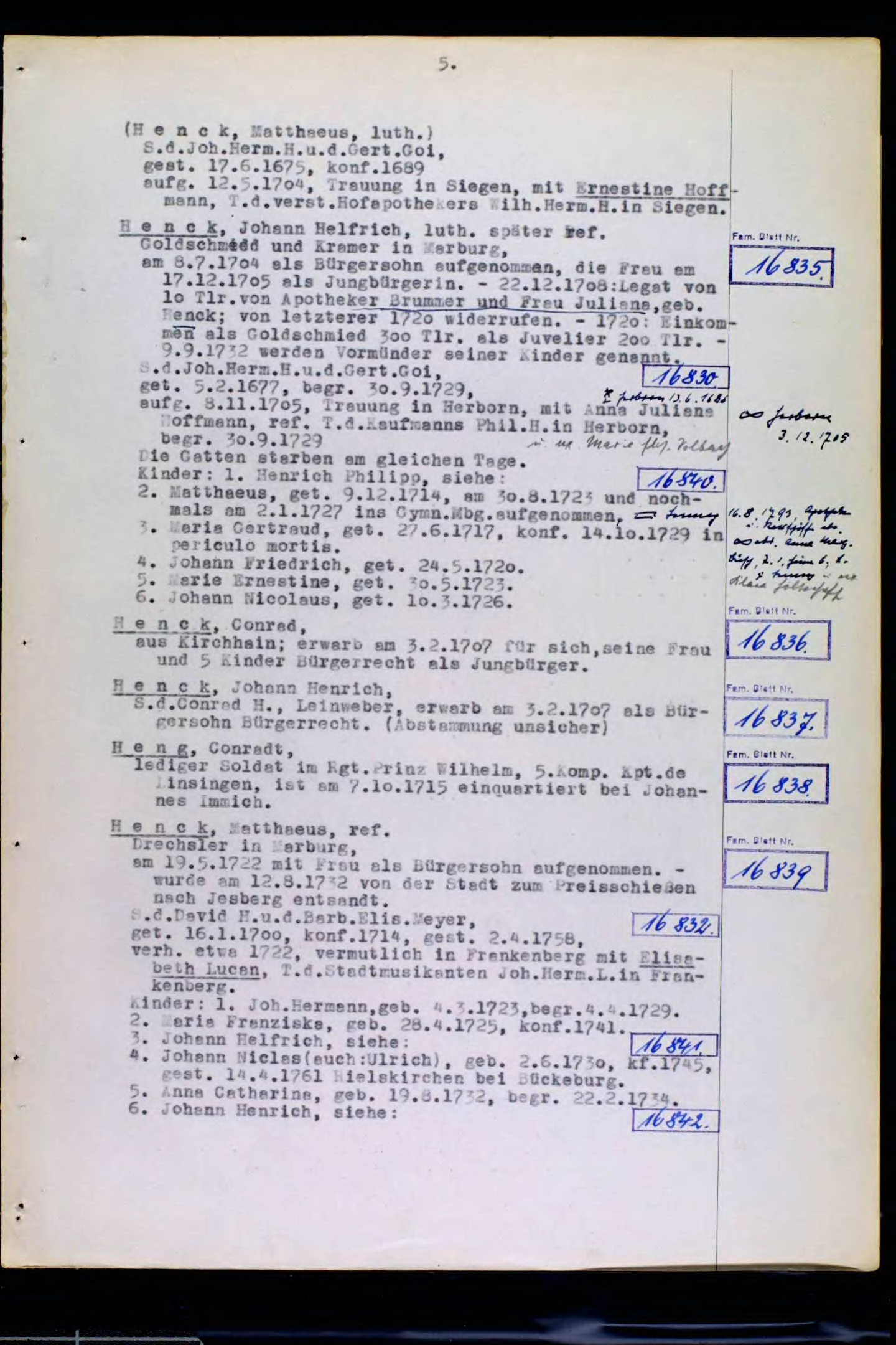 | Seit Fertigstellung des Marburger Sippenbuches 1950-1966 sind zahlreiche Ergänzungen und auch notwendige Korrekturen bekannt geworden. Zur aktuellen Seite existiert noch keine Ergänzunges- und Korrekturseite. Wenn Sie selbst Ergänzungen vornehmen möchten, wenden Sie sich bitte an Benutzer:Ernestus. |