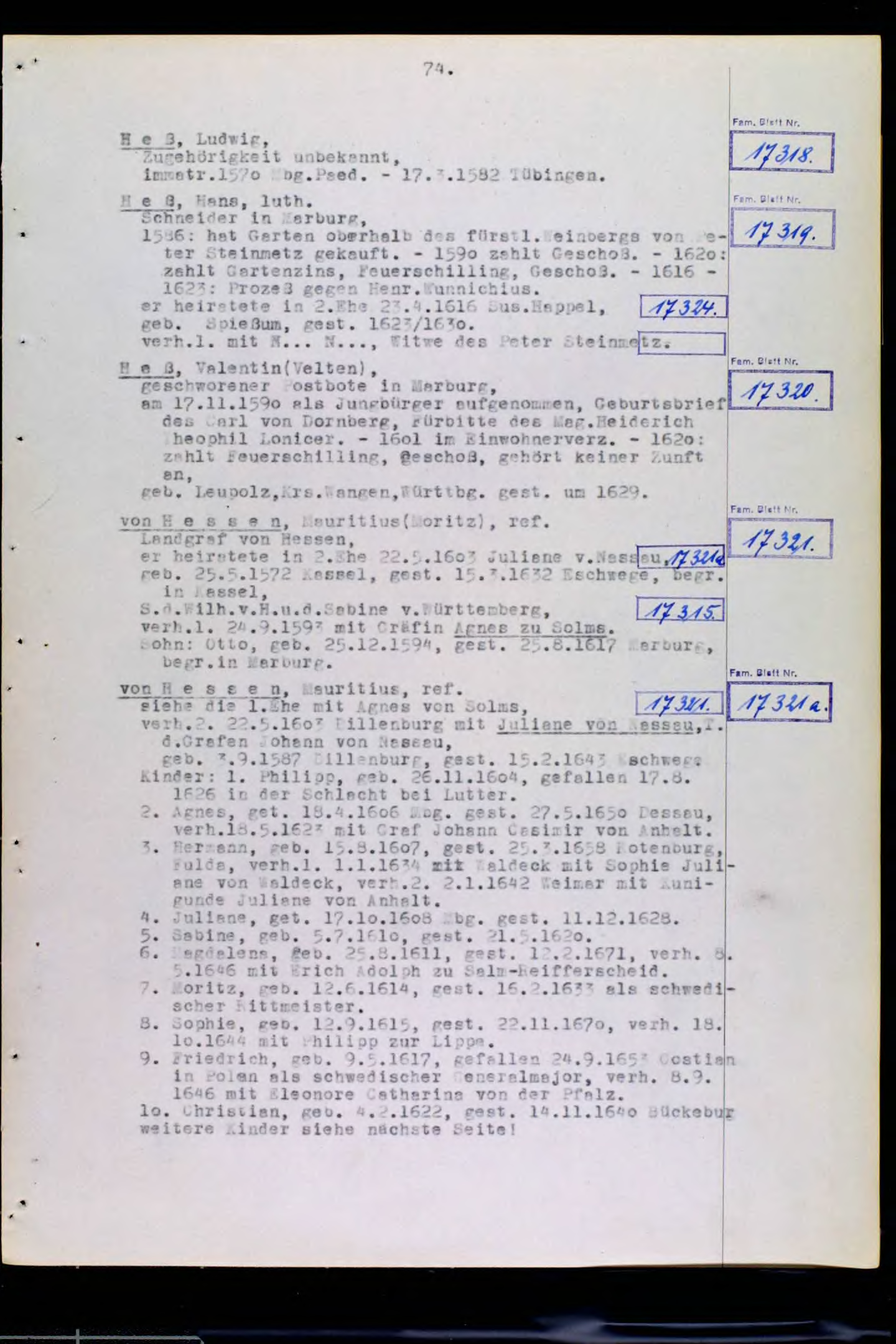| Seit Fertigstellung des Marburger Sippenbuches 1950-1966 sind zahlreiche Ergänzungen und auch notwendige Korrekturen bekannt geworden. Zur aktuellen Seite existiert noch keine Ergänzunges- und Korrekturseite. Wenn Sie selbst Ergänzungen vornehmen möchten, wenden Sie sich bitte an Benutzer:Ernestus. |