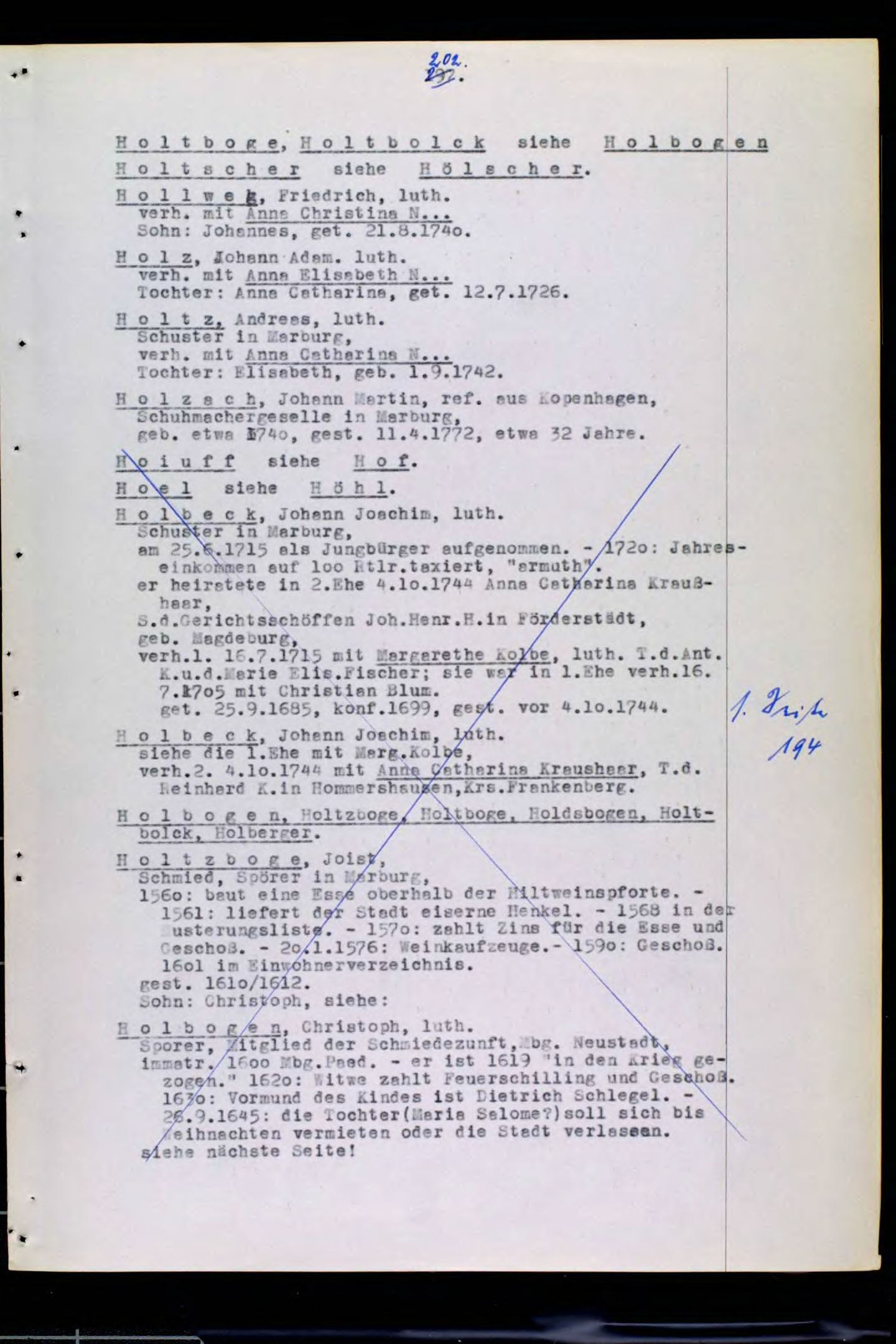 Info non-talk.svg Seit Fertigstellung des Marburger Sippenbuches 1950-1966 sind zahlreiche Ergänzungen und auch notwendige Korrekturen bekannt geworden. Zur aktuellen Seite existiert noch keine Ergänzunges- und Korrekturseite. Wenn Sie selbst Ergänzungen vornehmen möchten, wenden Sie sich bitte an Benutzer:Ernestus.