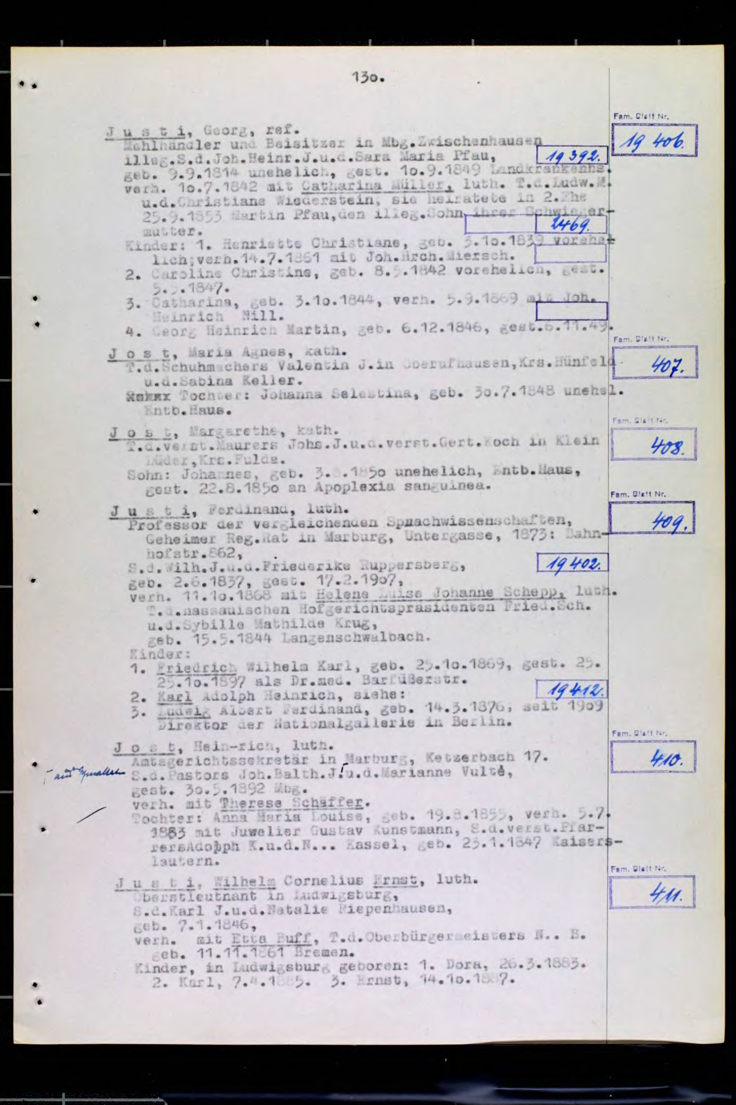 | Seit Fertigstellung des Marburger Sippenbuches 1950-1966 sind zahlreiche Ergänzungen und auch notwendige Korrekturen bekannt geworden. Zur aktuellen Seite existiert noch keine Ergänzunges- und Korrekturseite. Wenn Sie selbst Ergänzungen vornehmen möchten, wenden Sie sich bitte an Benutzer:Ernestus. |