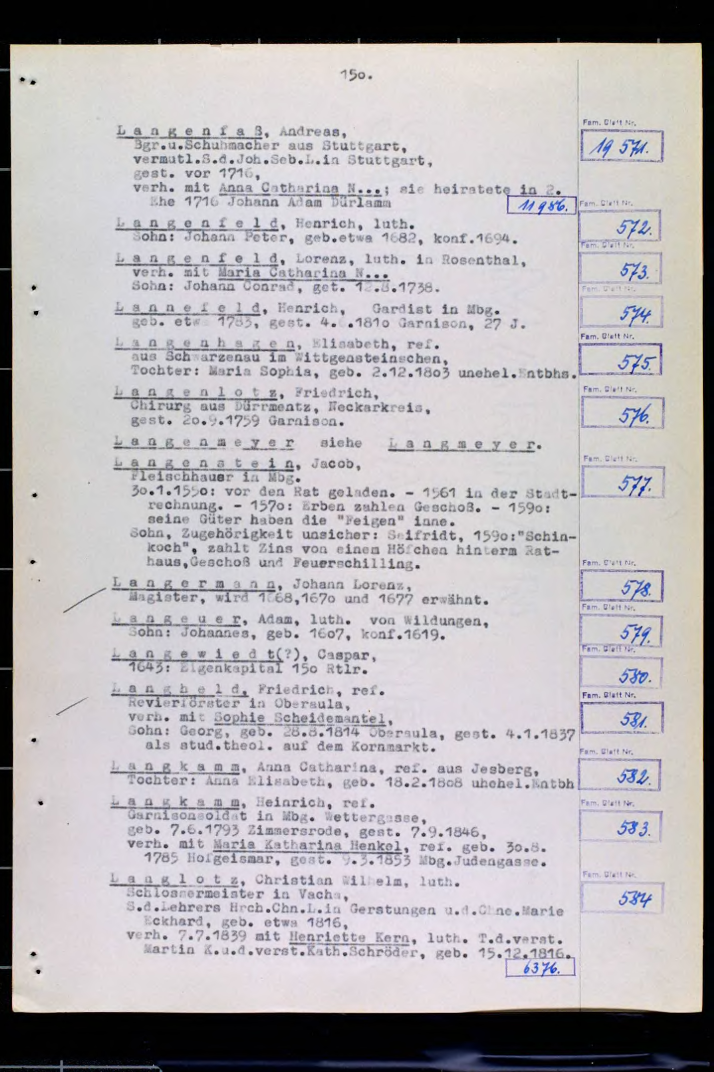 | Wenn Sie mit dem Marburger Sippenbuch noch nicht vertraut sind, sollten Sie die Benutzungshinweise beachten. |