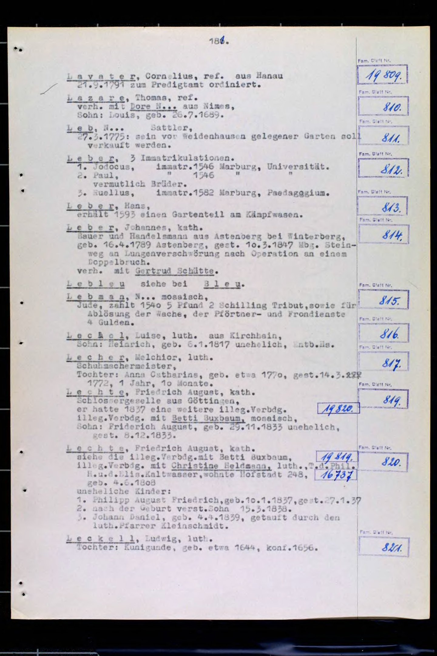 | Seit Fertigstellung des Marburger Sippenbuches 1950-1966 sind zahlreiche Ergänzungen und auch notwendige Korrekturen bekannt geworden. Zur aktuellen Seite existiert noch keine Ergänzunges- und Korrekturseite. Wenn Sie selbst Ergänzungen vornehmen möchten, wenden Sie sich bitte an Benutzer:Ernestus. |