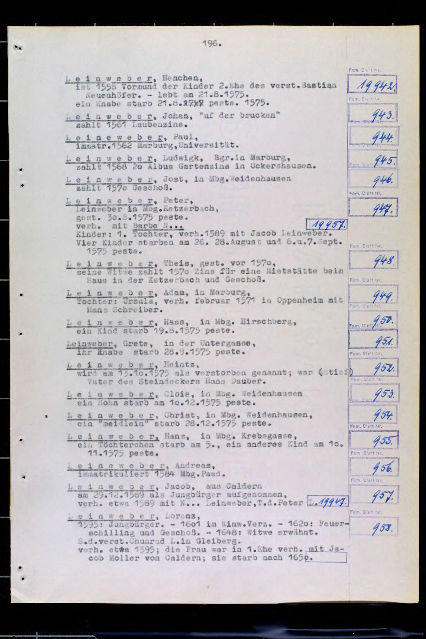 Info non-talk.svg Seit Fertigstellung des Marburger Sippenbuches 1950-1966 sind zahlreiche Ergänzungen und auch notwendige Korrekturen bekannt geworden. Zur aktuellen Seite existiert noch keine Ergänzunges- und Korrekturseite. Wenn Sie selbst Ergänzungen vornehmen möchten, wenden Sie sich bitte an Benutzer:Ernestus.