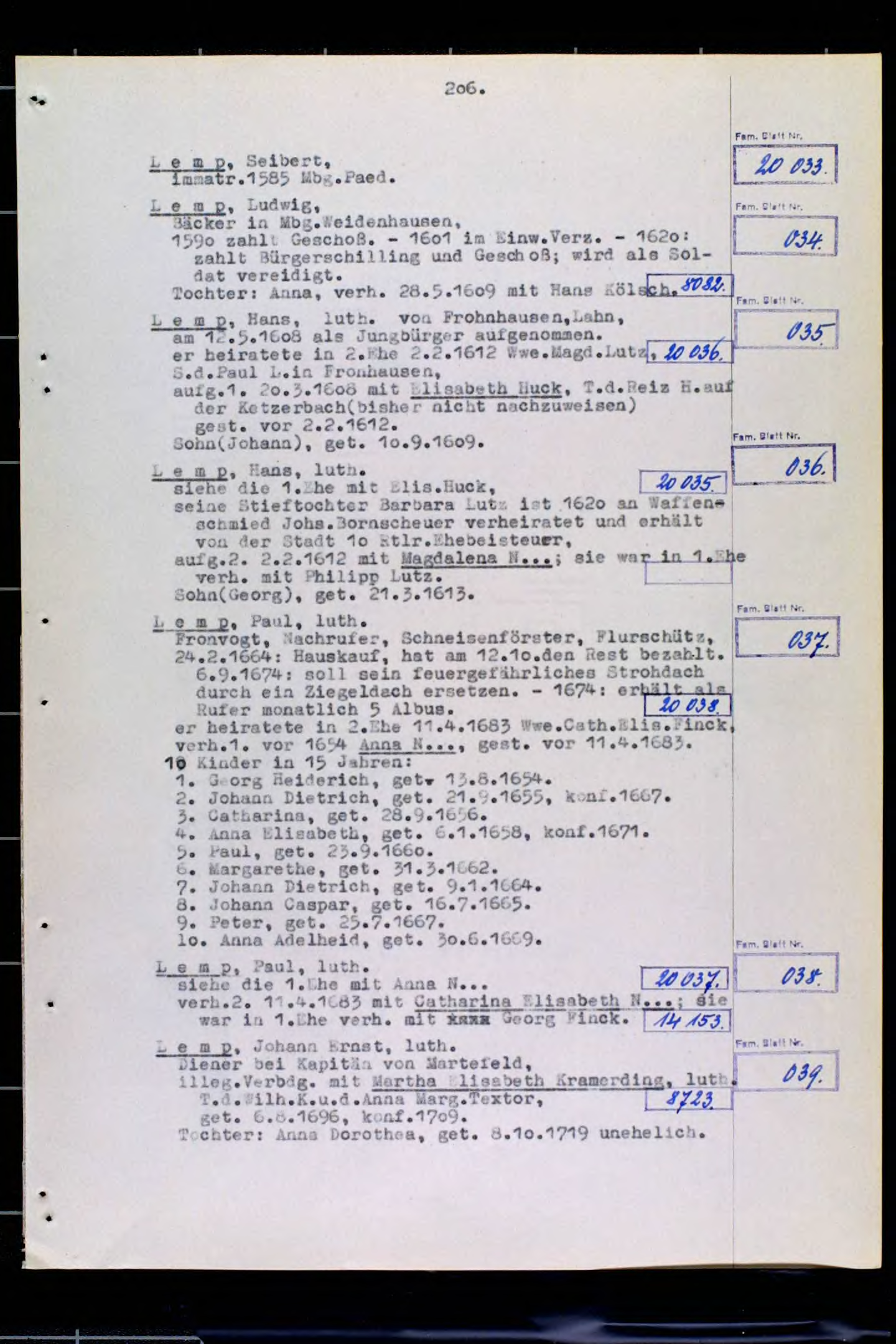 | Seit Fertigstellung des Marburger Sippenbuches 1950-1966 sind zahlreiche Ergänzungen und auch notwendige Korrekturen bekannt geworden. Zur aktuellen Seite existiert noch keine Ergänzunges- und Korrekturseite. Wenn Sie selbst Ergänzungen vornehmen möchten, wenden Sie sich bitte an Benutzer:Ernestus. |