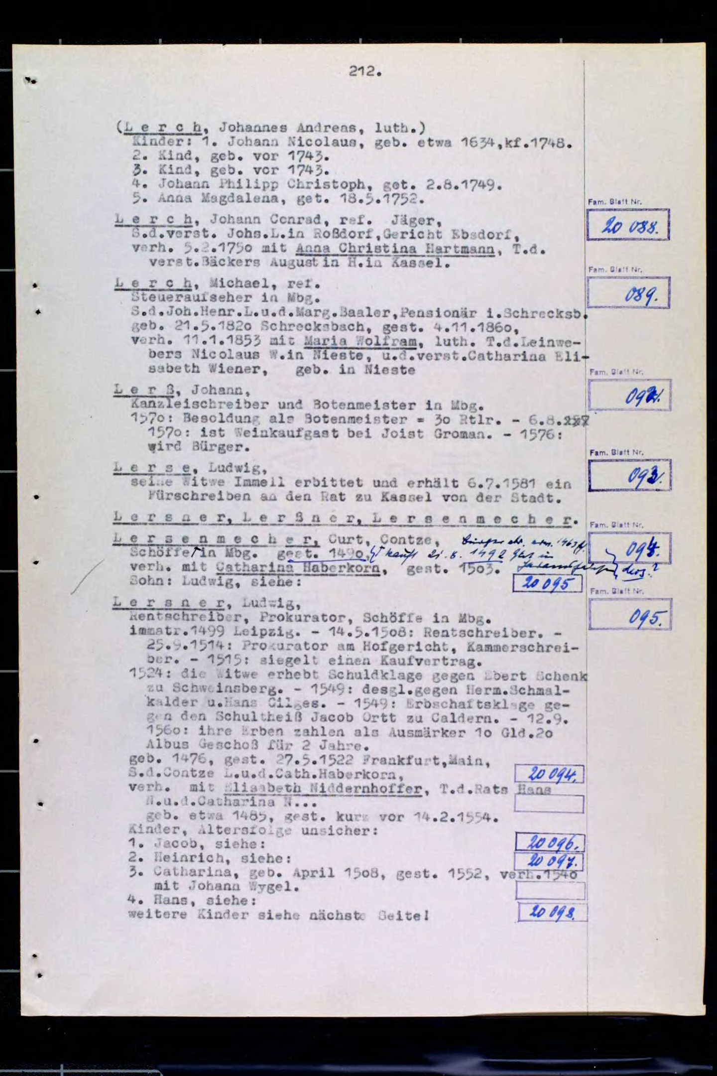 Info non-talk.svg Seit Fertigstellung des Marburger Sippenbuches 1950-1966 sind zahlreiche Ergänzungen und auch notwendige Korrekturen bekannt geworden. Zur aktuellen Seite existiert noch keine Ergänzunges- und Korrekturseite. Wenn Sie selbst Ergänzungen vornehmen möchten, wenden Sie sich bitte an Benutzer:Ernestus.