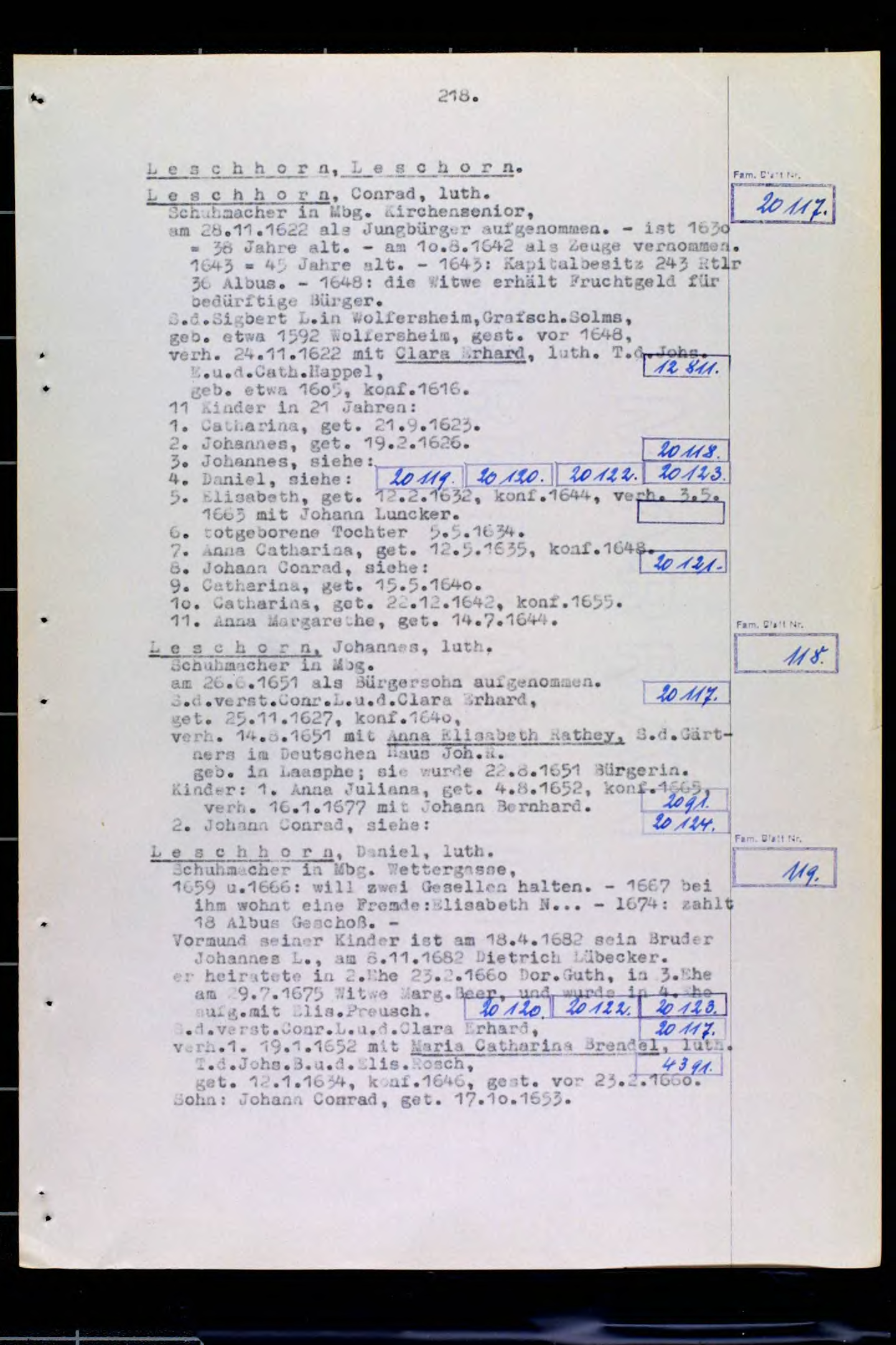 | Seit Fertigstellung des Marburger Sippenbuches 1950-1966 sind zahlreiche Ergänzungen und auch notwendige Korrekturen bekannt geworden. Zur aktuellen Seite existiert noch keine Ergänzunges- und Korrekturseite. Wenn Sie selbst Ergänzungen vornehmen möchten, wenden Sie sich bitte an Benutzer:Ernestus. |