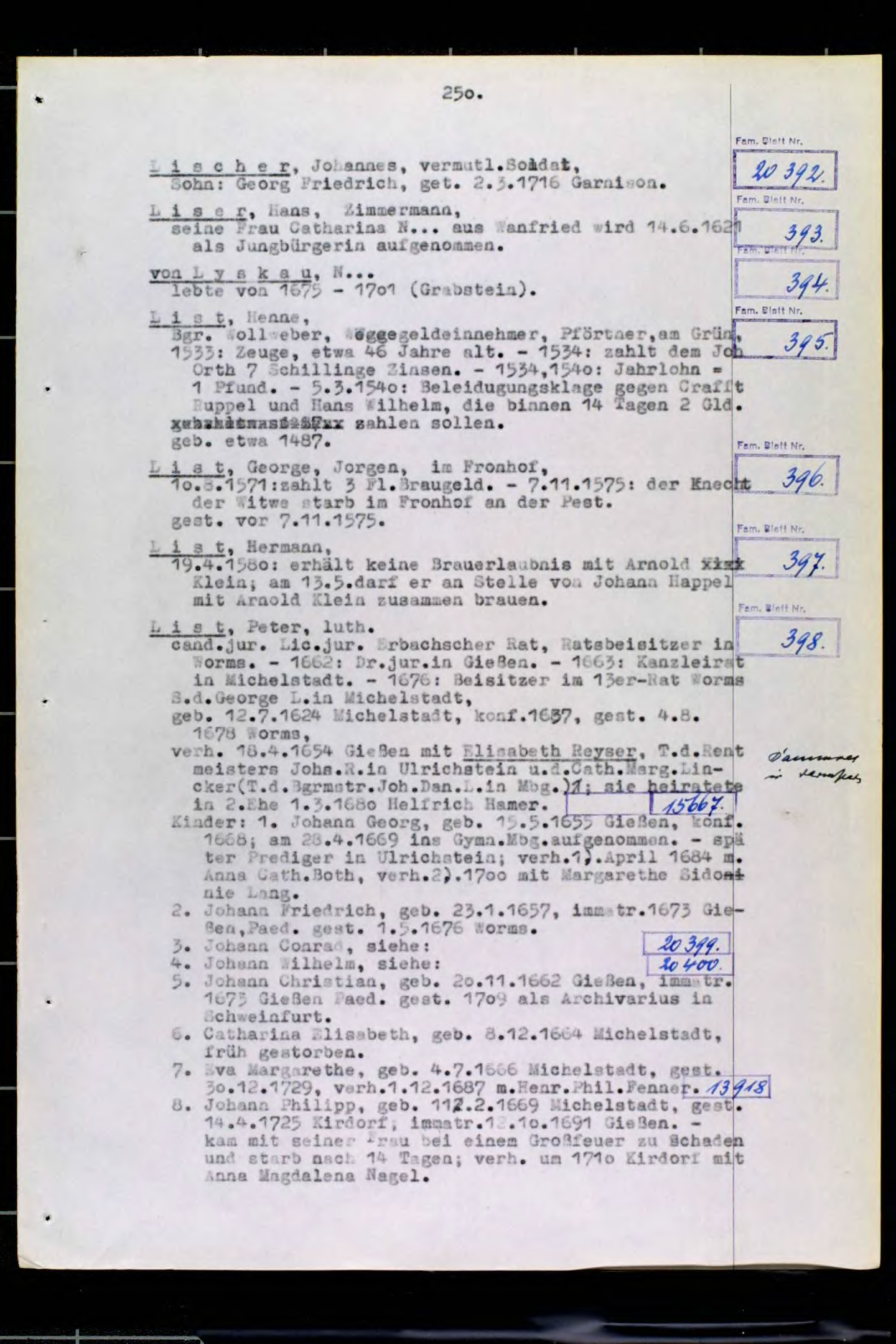 Marburger Sippenbuch/13/250