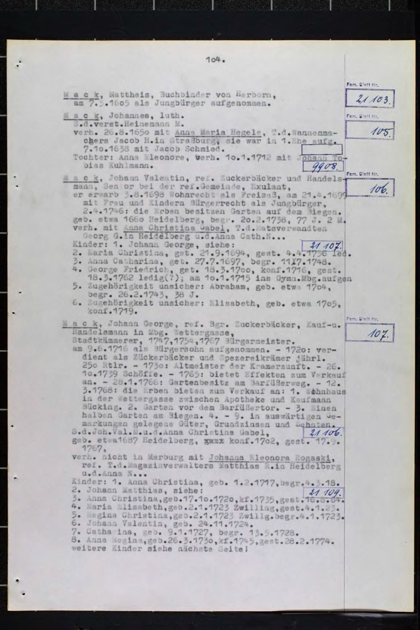 | Seit Fertigstellung des Marburger Sippenbuches 1950-1966 sind zahlreiche Ergänzungen und auch notwendige Korrekturen bekannt geworden. Zur aktuellen Seite existiert noch keine Ergänzunges- und Korrekturseite. Wenn Sie selbst Ergänzungen vornehmen möchten, wenden Sie sich bitte an Benutzer:Ernestus. |