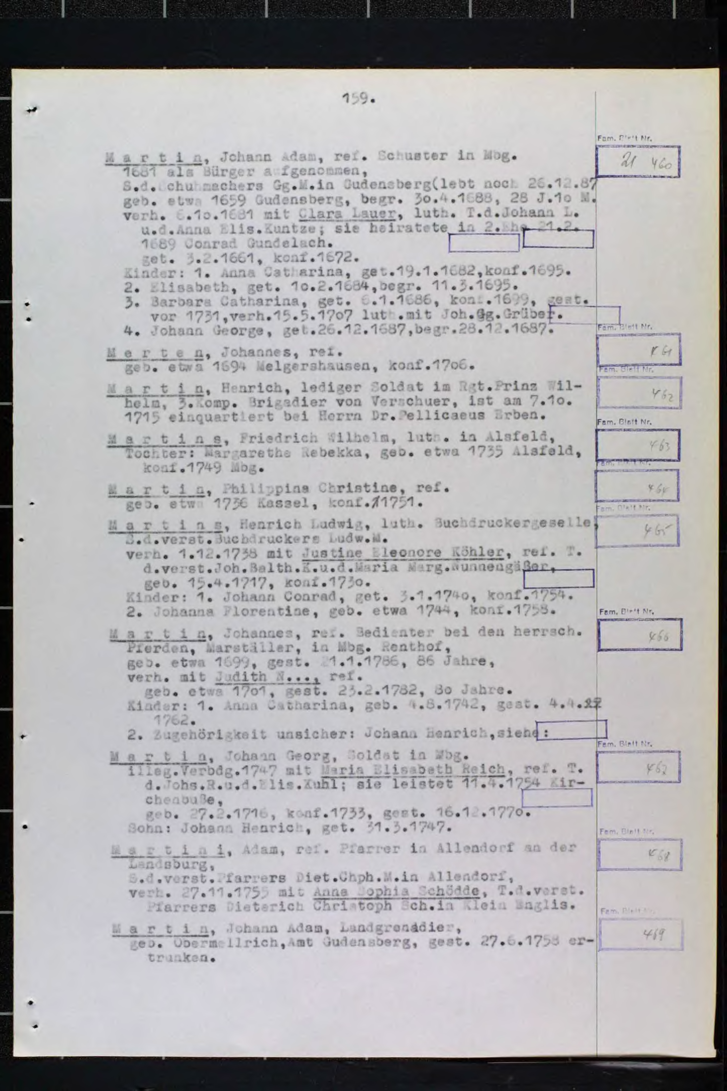 | Seit Fertigstellung des Marburger Sippenbuches 1950-1966 sind zahlreiche Ergänzungen und auch notwendige Korrekturen bekannt geworden. Zur aktuellen Seite existiert noch keine Ergänzunges- und Korrekturseite. Wenn Sie selbst Ergänzungen vornehmen möchten, wenden Sie sich bitte an Benutzer:Ernestus. |