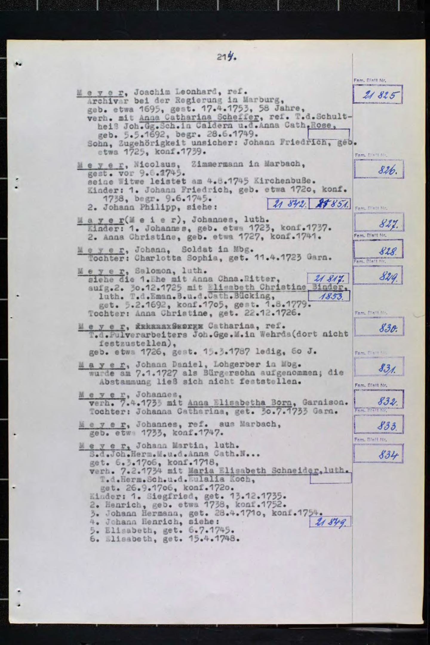 Info non-talk.svg Seit Fertigstellung des Marburger Sippenbuches 1950-1966 sind zahlreiche Ergänzungen und auch notwendige Korrekturen bekannt geworden. Zur aktuellen Seite existiert noch keine Ergänzunges- und Korrekturseite. Wenn Sie selbst Ergänzungen vornehmen möchten, wenden Sie sich bitte an Benutzer:Ernestus.