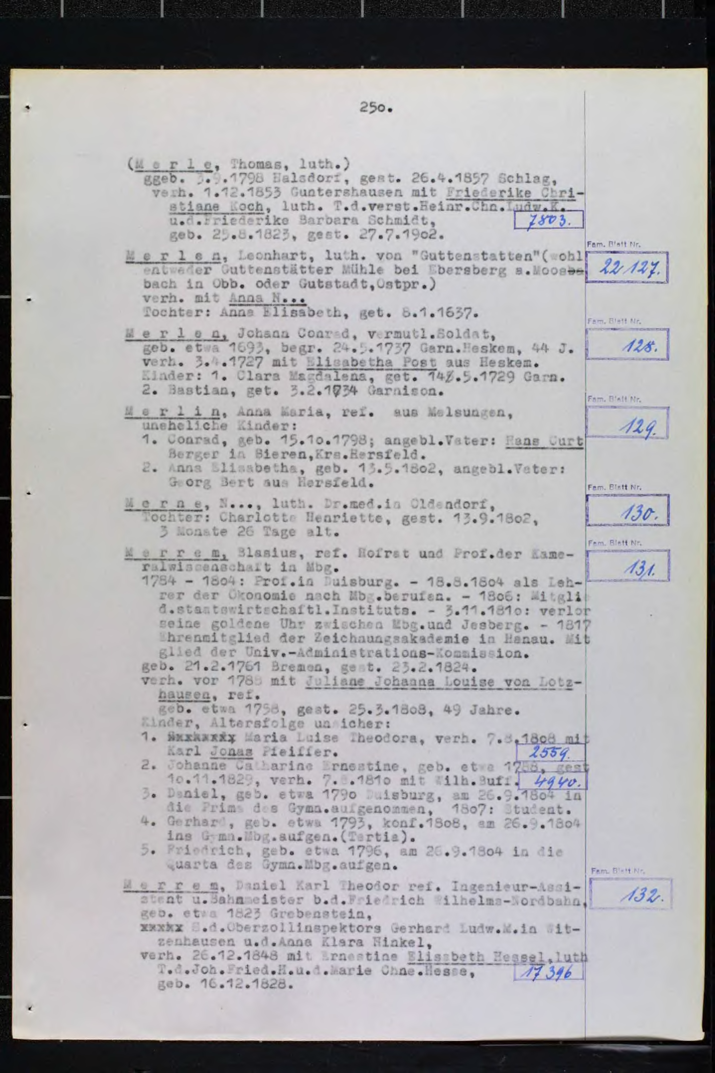 Info non-talk.svg Seit Fertigstellung des Marburger Sippenbuches 1950-1966 sind zahlreiche Ergänzungen und auch notwendige Korrekturen bekannt geworden. Zur aktuellen Seite existiert noch keine Ergänzunges- und Korrekturseite. Wenn Sie selbst Ergänzungen vornehmen möchten, wenden Sie sich bitte an Benutzer:Ernestus.