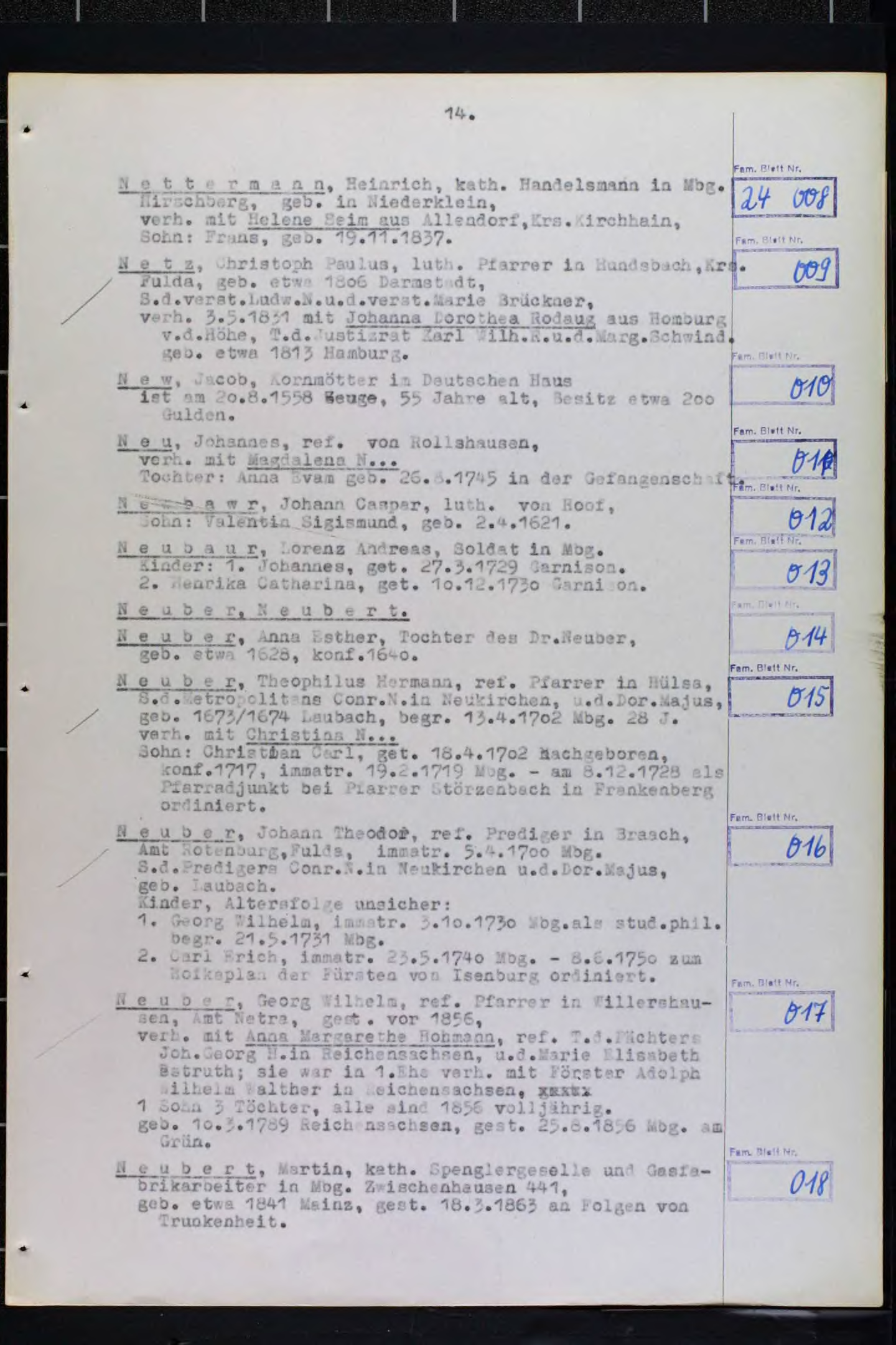 Info non-talk.svg Seit Fertigstellung des Marburger Sippenbuches 1950-1966 sind zahlreiche Ergänzungen und auch notwendige Korrekturen bekannt geworden. Zur aktuellen Seite existiert noch keine Ergänzunges- und Korrekturseite. Wenn Sie selbst Ergänzungen vornehmen möchten, wenden Sie sich bitte an Benutzer:Ernestus.