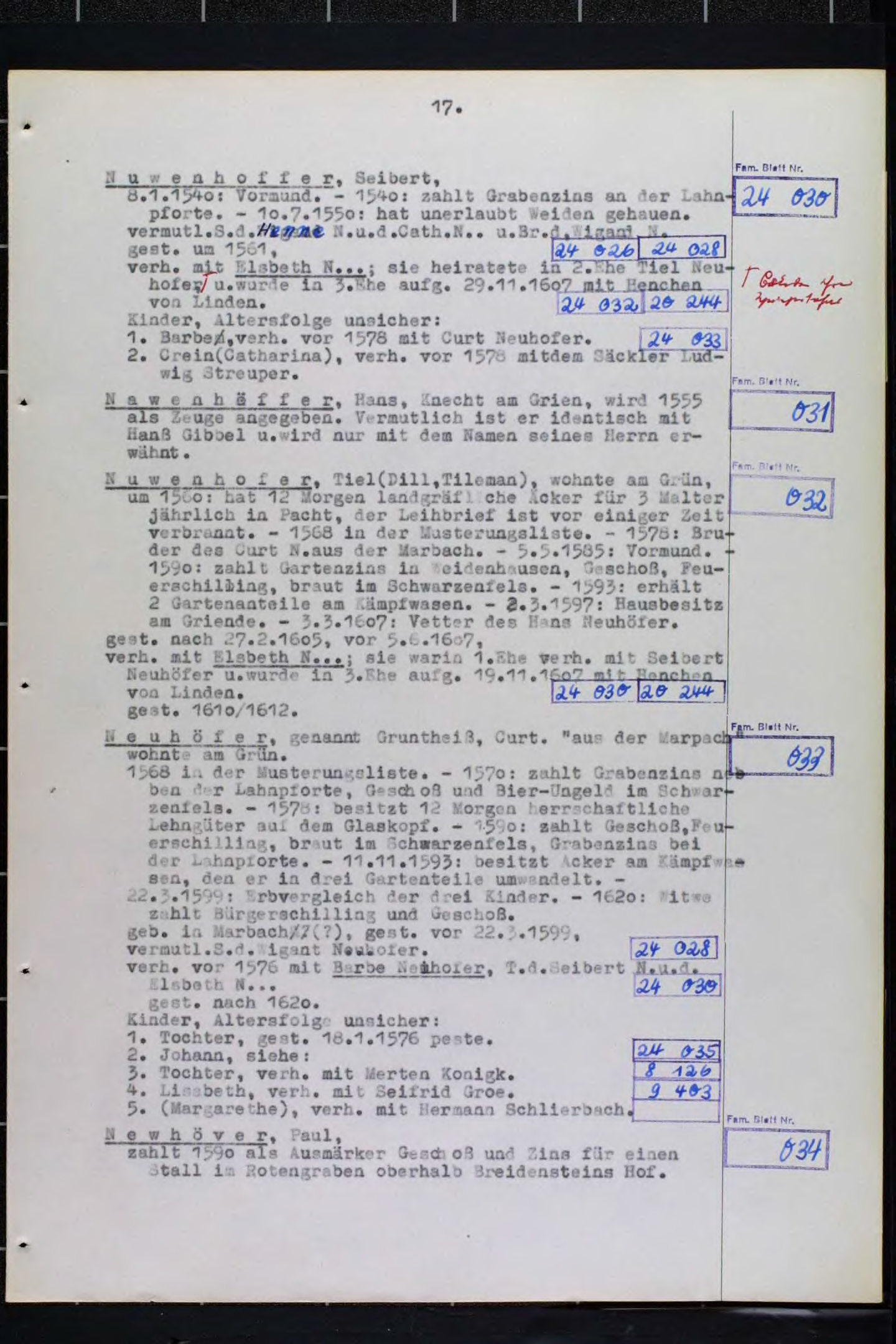 Info non-talk.svg Seit Fertigstellung des Marburger Sippenbuches 1950-1966 sind zahlreiche Ergänzungen und auch notwendige Korrekturen bekannt geworden. Zur aktuellen Seite existiert noch keine Ergänzunges- und Korrekturseite. Wenn Sie selbst Ergänzungen vornehmen möchten, wenden Sie sich bitte an Benutzer:Ernestus.