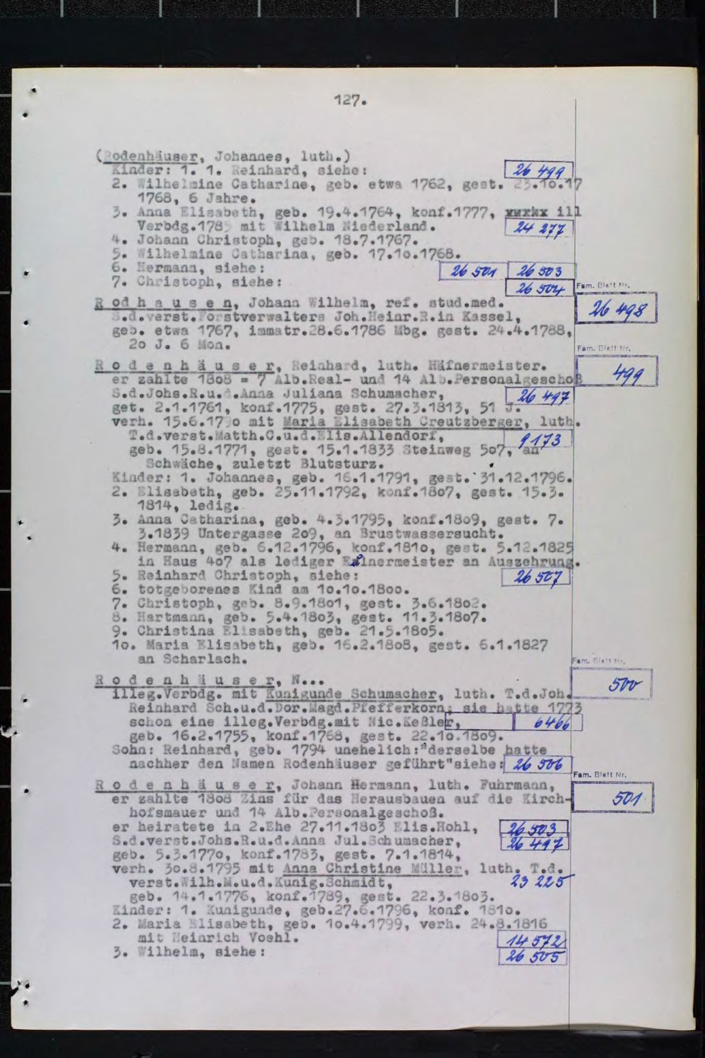 | Seit Fertigstellung des Marburger Sippenbuches 1950-1966 sind zahlreiche Ergänzungen und auch notwendige Korrekturen bekannt geworden. Zur aktuellen Seite existiert noch keine Ergänzunges- und Korrekturseite. Wenn Sie selbst Ergänzungen vornehmen möchten, wenden Sie sich bitte an Benutzer:Ernestus. |