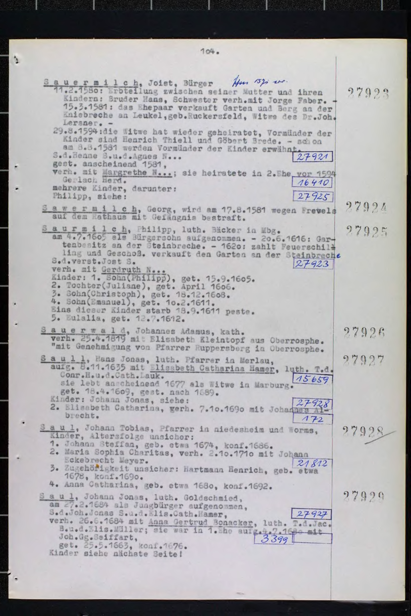 Marburger Sippenbuch (Exemplar der GFKW in Kassel)