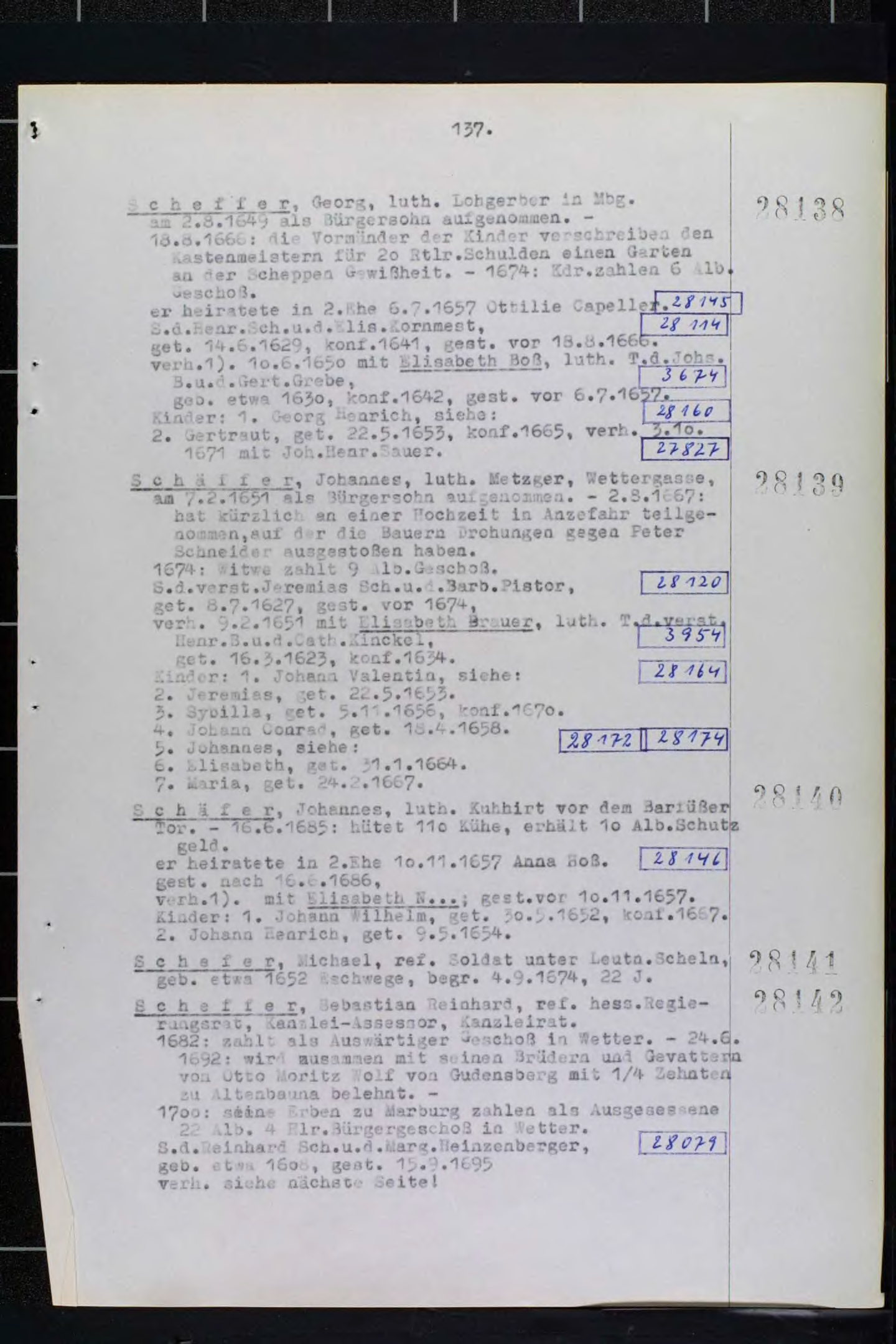 | Seit Fertigstellung des Marburger Sippenbuches 1950-1966 sind zahlreiche Ergänzungen und auch notwendige Korrekturen bekannt geworden. Zur aktuellen Seite existiert noch keine Ergänzunges- und Korrekturseite. Wenn Sie selbst Ergänzungen vornehmen möchten, wenden Sie sich bitte an Benutzer:Ernestus. |
