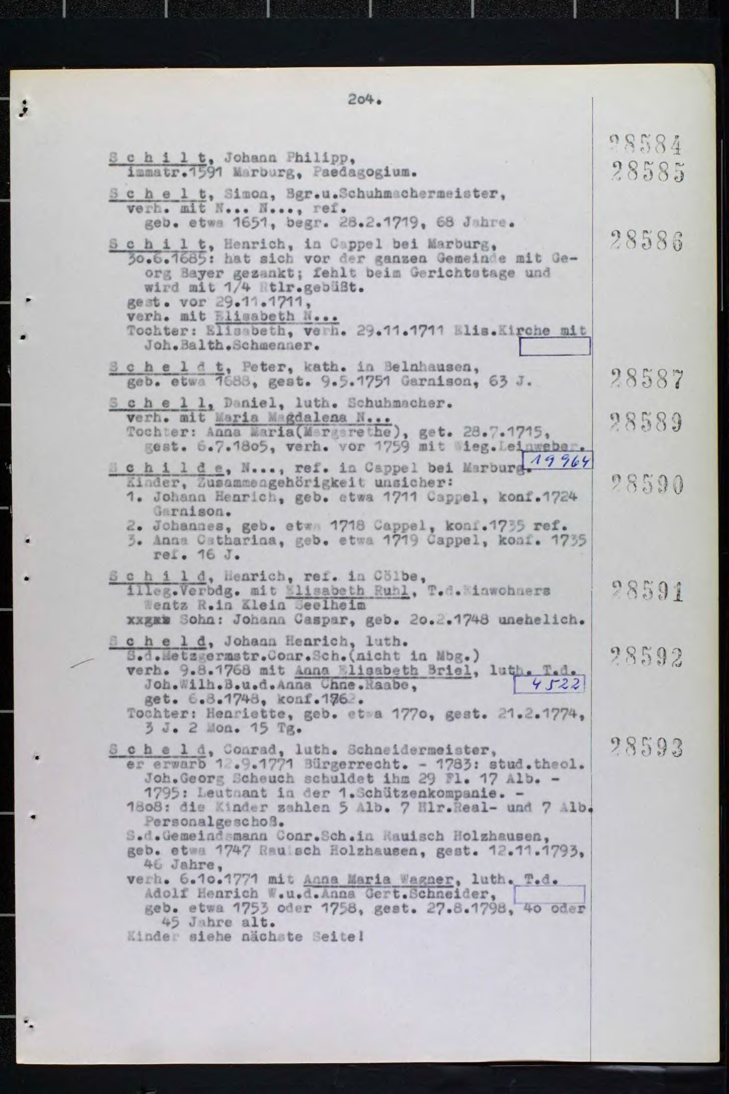 | Seit Fertigstellung des Marburger Sippenbuches 1950-1966 sind zahlreiche Ergänzungen und auch notwendige Korrekturen bekannt geworden. Zur aktuellen Seite existiert noch keine Ergänzunges- und Korrekturseite. Wenn Sie selbst Ergänzungen vornehmen möchten, wenden Sie sich bitte an Benutzer:Ernestus. |