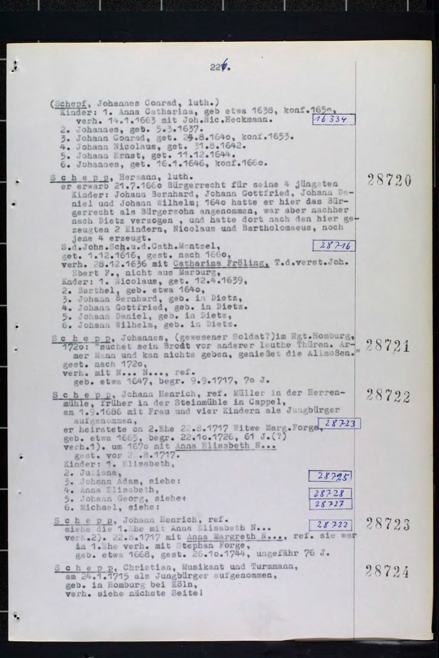 | Seit Fertigstellung des Marburger Sippenbuches 1950-1966 sind zahlreiche Ergänzungen und auch notwendige Korrekturen bekannt geworden. Zur aktuellen Seite existiert noch keine Ergänzunges- und Korrekturseite. Wenn Sie selbst Ergänzungen vornehmen möchten, wenden Sie sich bitte an Benutzer:Ernestus. |