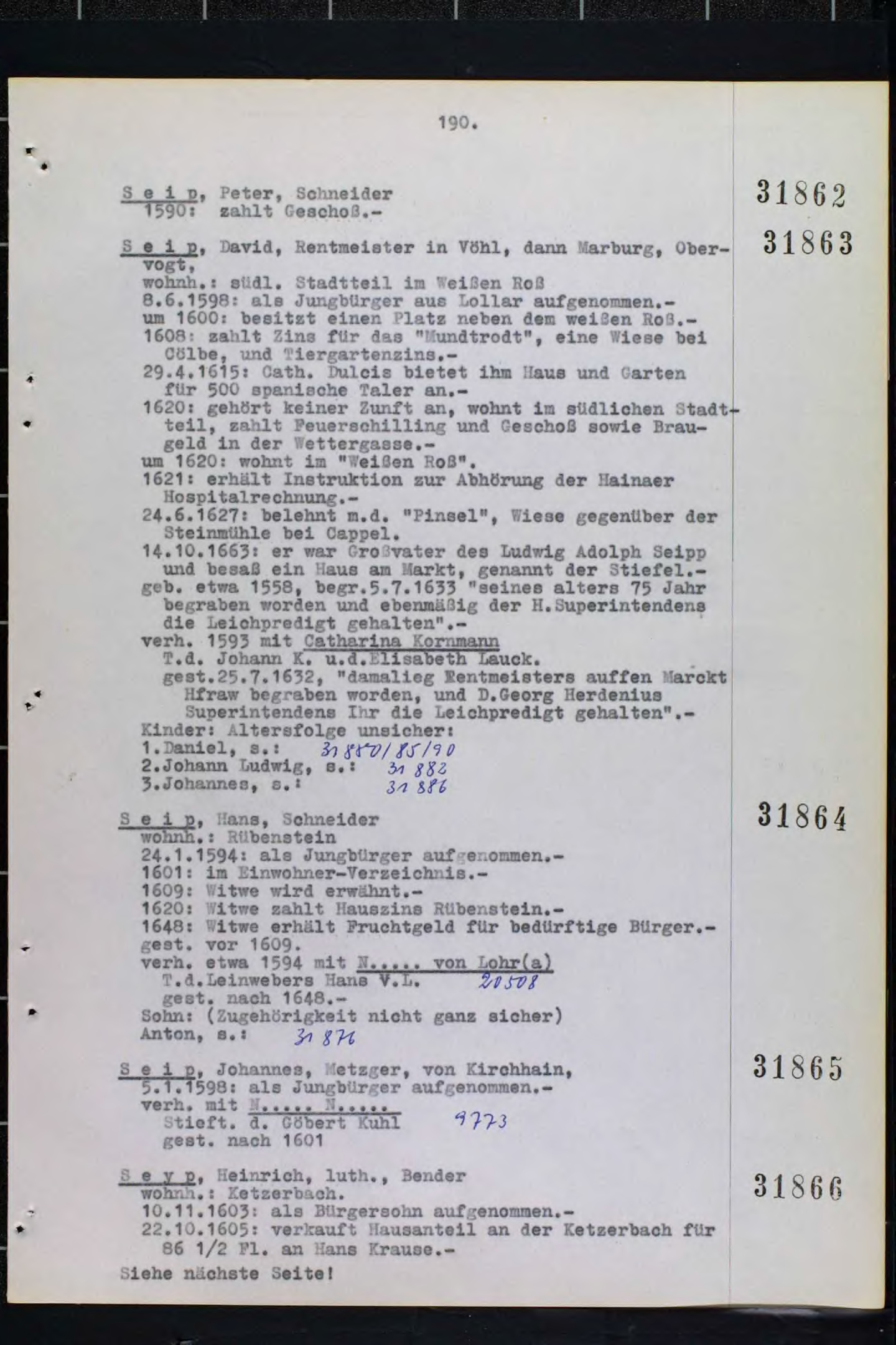 Info non-talk.svg Seit Fertigstellung des Marburger Sippenbuches 1950-1966 sind zahlreiche Ergänzungen und auch notwendige Korrekturen bekannt geworden. Zur aktuellen Seite existiert noch keine Ergänzunges- und Korrekturseite. Wenn Sie selbst Ergänzungen vornehmen möchten, wenden Sie sich bitte an Benutzer:Ernestus.