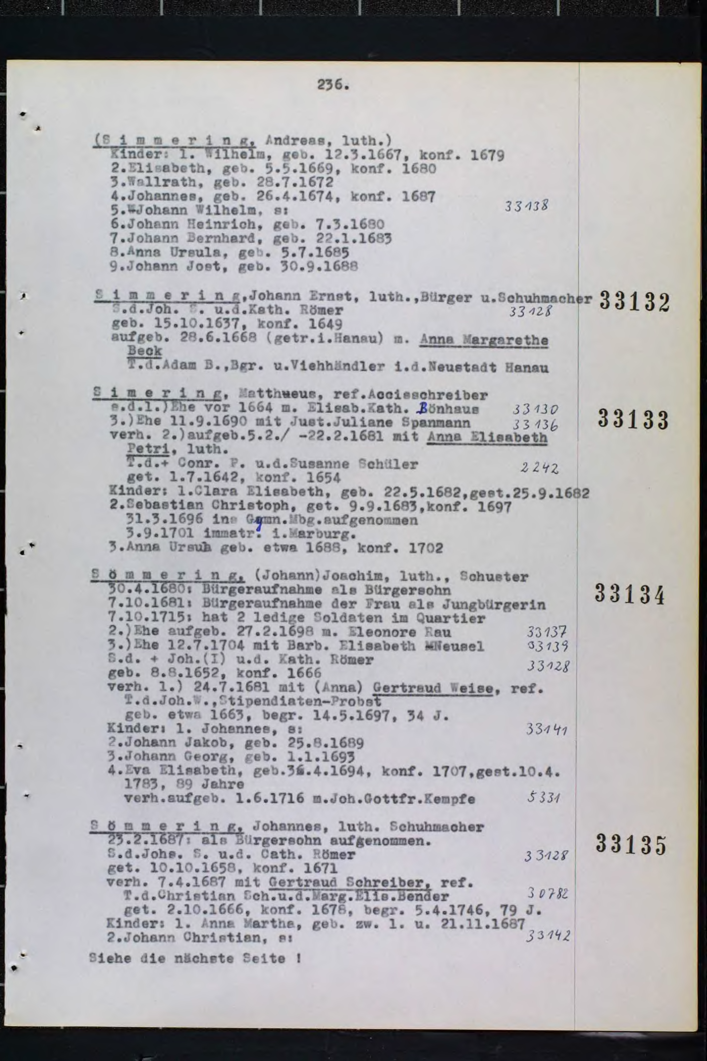 Info non-talk.svg Seit Fertigstellung des Marburger Sippenbuches 1950-1966 sind zahlreiche Ergänzungen und auch notwendige Korrekturen bekannt geworden. Zur aktuellen Seite existiert noch keine Ergänzunges- und Korrekturseite. Wenn Sie selbst Ergänzungen vornehmen möchten, wenden Sie sich bitte an Benutzer:Ernestus.