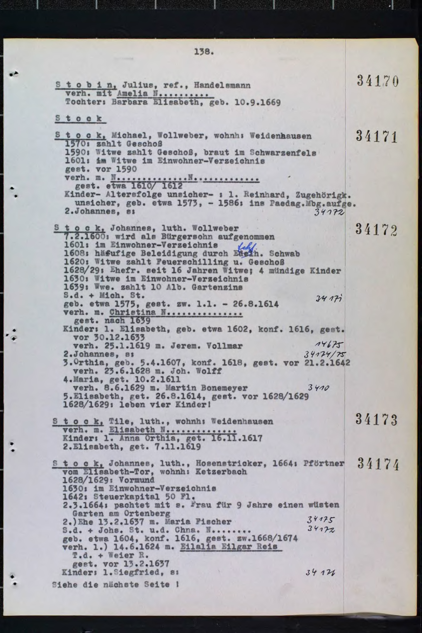 | Seit Fertigstellung des Marburger Sippenbuches 1950-1966 sind zahlreiche Ergänzungen und auch notwendige Korrekturen bekannt geworden. Zur aktuellen Seite existiert noch keine Ergänzunges- und Korrekturseite. Wenn Sie selbst Ergänzungen vornehmen möchten, wenden Sie sich bitte an Benutzer:Ernestus. |
