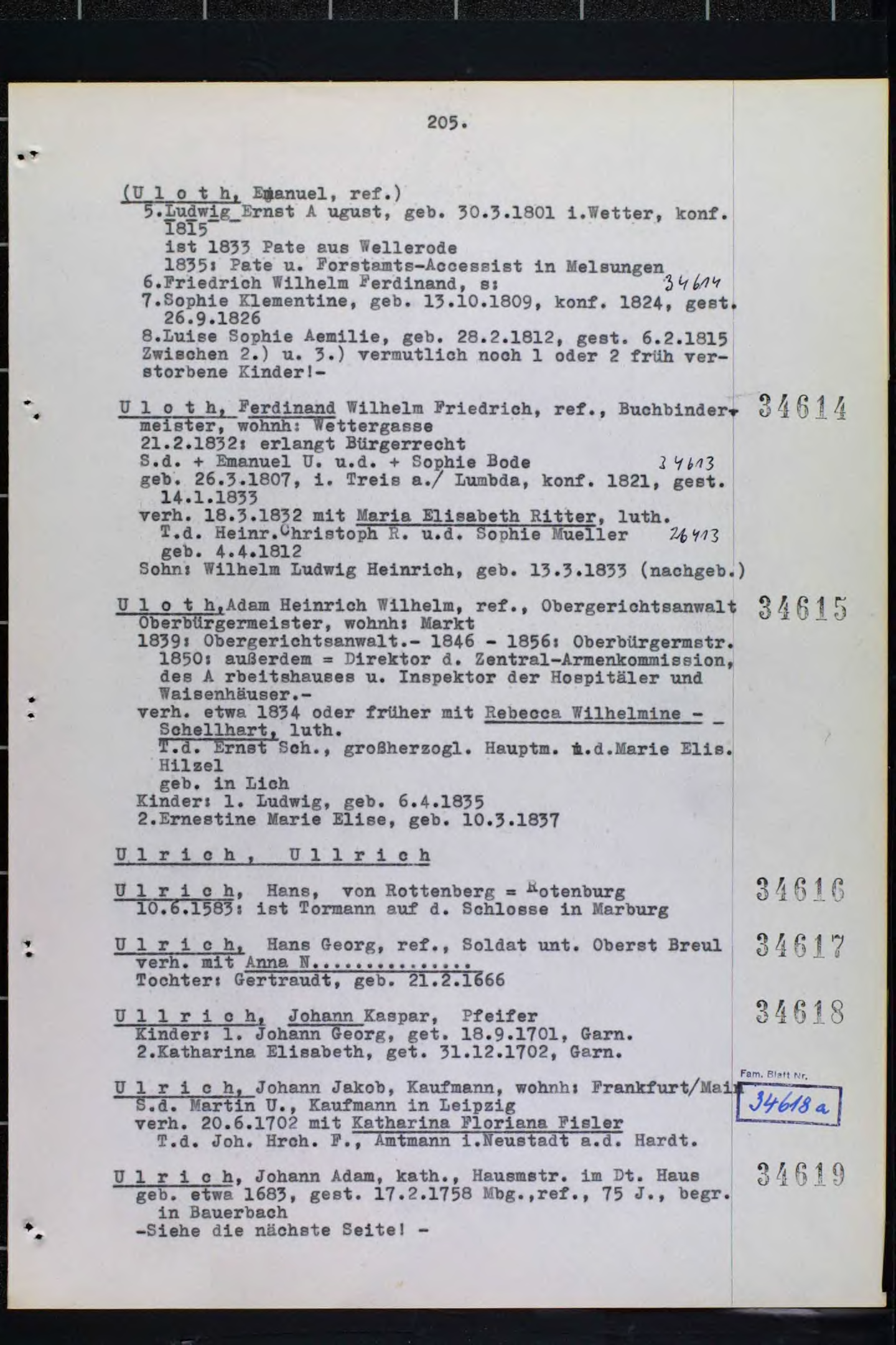 | Seit Fertigstellung des Marburger Sippenbuches 1950-1966 sind zahlreiche Ergänzungen und auch notwendige Korrekturen bekannt geworden. Zur aktuellen Seite existiert noch keine Ergänzunges- und Korrekturseite. Wenn Sie selbst Ergänzungen vornehmen möchten, wenden Sie sich bitte an Benutzer:Ernestus. |
