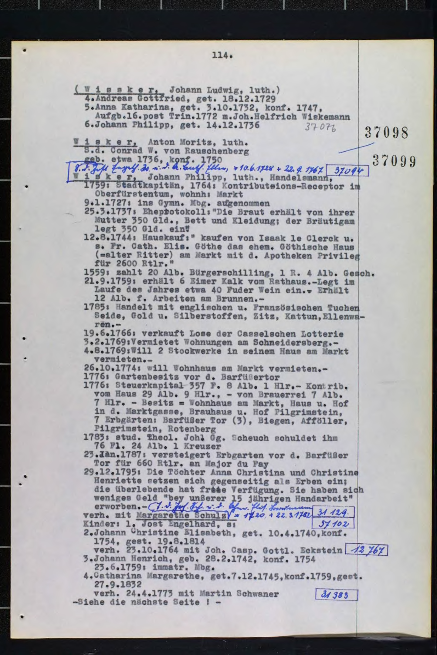 Info non-talk.svg Seit Fertigstellung des Marburger Sippenbuches 1950-1966 sind zahlreiche Ergänzungen und auch notwendige Korrekturen bekannt geworden. Zur aktuellen Seite existiert noch keine Ergänzunges- und Korrekturseite. Wenn Sie selbst Ergänzungen vornehmen möchten, wenden Sie sich bitte an Benutzer:Ernestus.