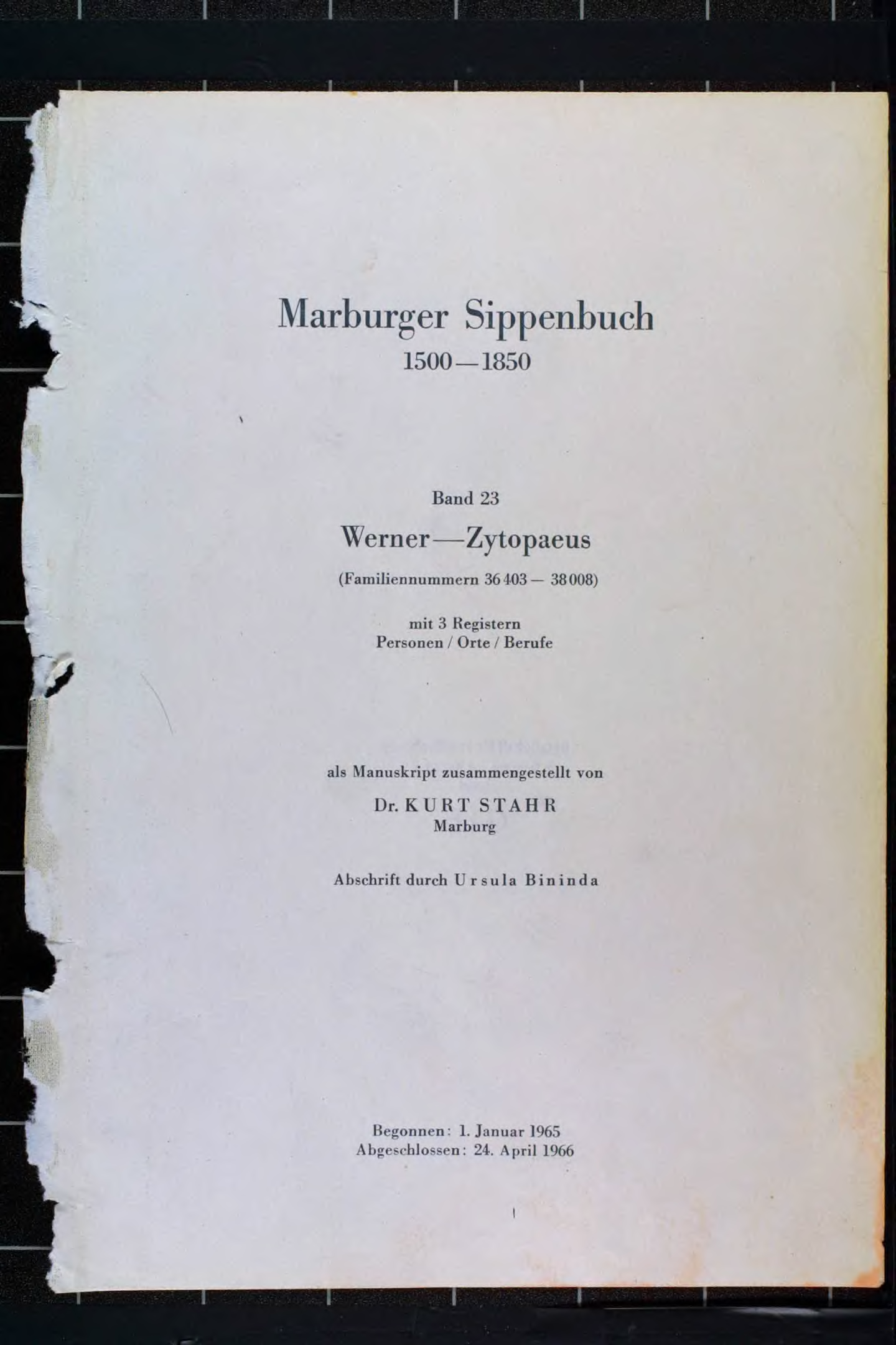 Marburger Sippenbuch/23/Titelblatt