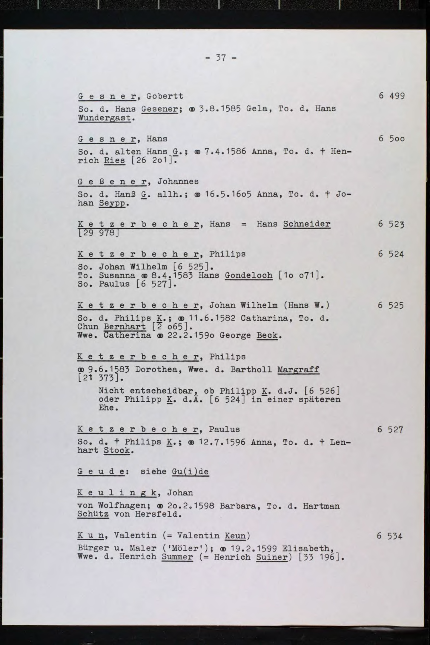 | Seit Fertigstellung des Marburger Sippenbuches 1950-1966 sind zahlreiche Ergänzungen und auch notwendige Korrekturen bekannt geworden. Zur aktuellen Seite existiert noch keine Ergänzunges- und Korrekturseite. Wenn Sie selbst Ergänzungen vornehmen möchten, wenden Sie sich bitte an Benutzer:Ernestus. |