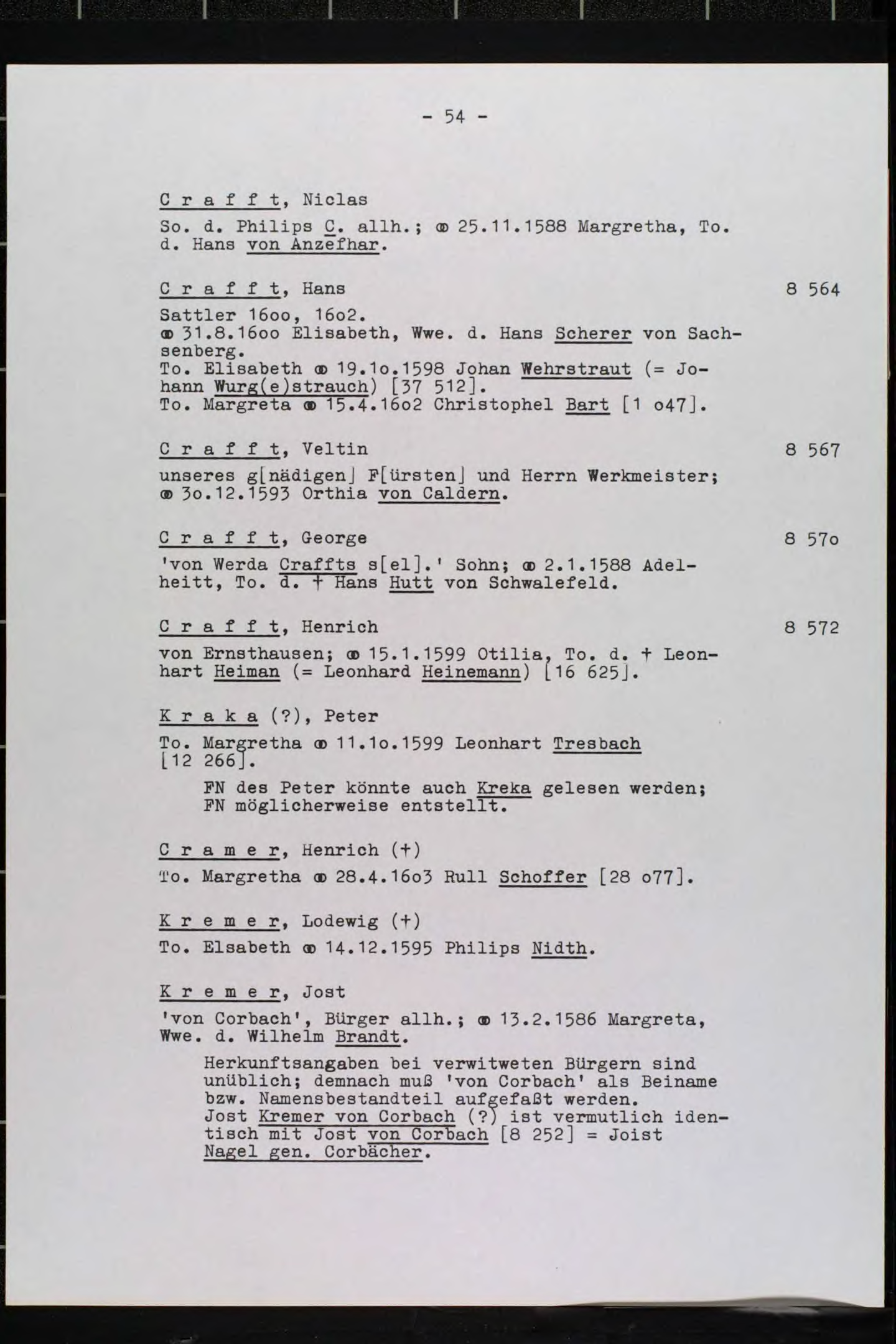 Info non-talk.svg Seit Fertigstellung des Marburger Sippenbuches 1950-1966 sind zahlreiche Ergänzungen und auch notwendige Korrekturen bekannt geworden. Zur aktuellen Seite existiert noch keine Ergänzunges- und Korrekturseite. Wenn Sie selbst Ergänzungen vornehmen möchten, wenden Sie sich bitte an Benutzer:Ernestus.