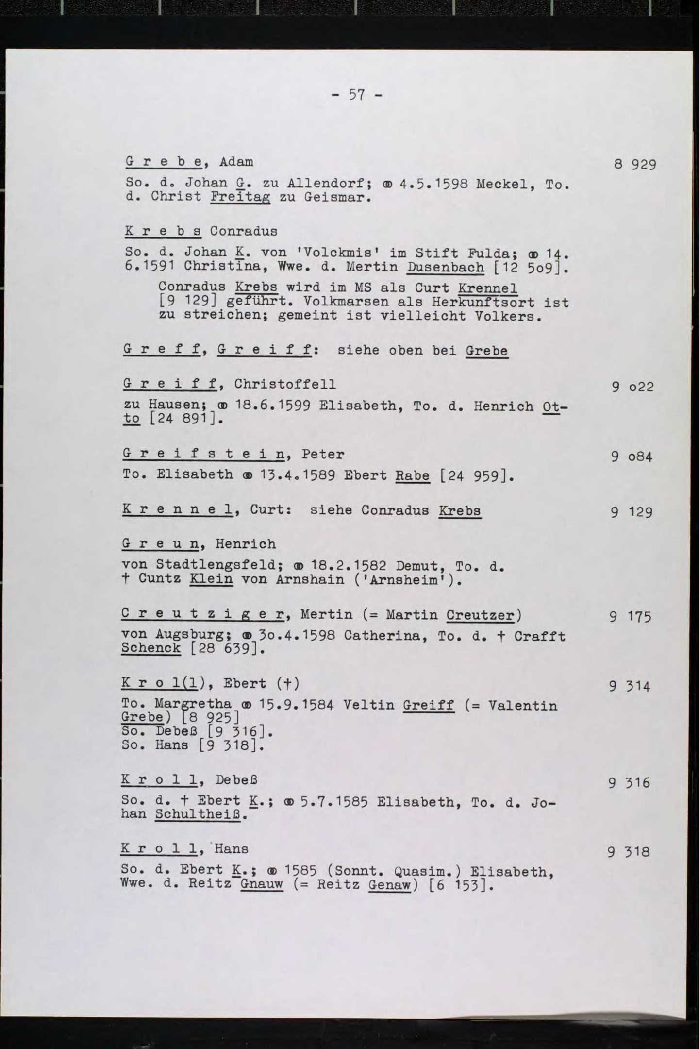| Exemplar der GFKW in Kassel Navigation über Alphabetisches Namensregister: A B C D E F G H I J K L M N O P Q R S T U V W X Y Z Bände:1 2 3 4 5 6 7 8 9 10 11 12 13 14 15 16 17 18 19 20 21 22 23 24 Ortsregister | |