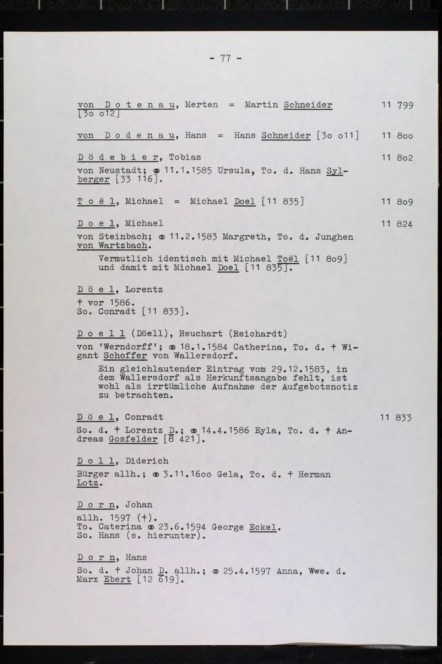 | Seit Fertigstellung des Marburger Sippenbuches 1950-1966 sind zahlreiche Ergänzungen und auch notwendige Korrekturen bekannt geworden. Zur aktuellen Seite existiert noch keine Ergänzunges- und Korrekturseite. Wenn Sie selbst Ergänzungen vornehmen möchten, wenden Sie sich bitte an Benutzer:Ernestus. |