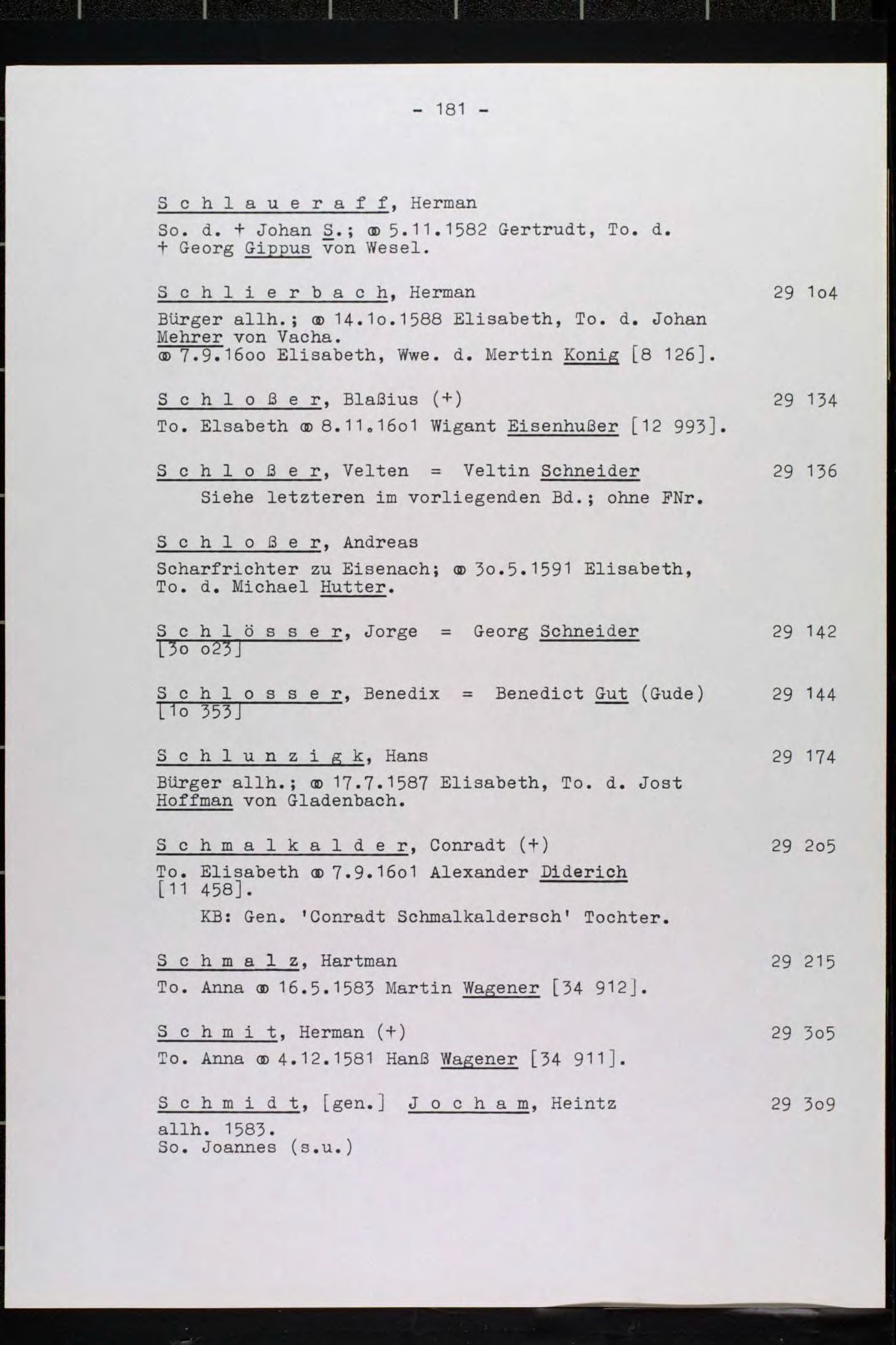 Info non-talk.svg Seit Fertigstellung des Marburger Sippenbuches 1950-1966 sind zahlreiche Ergänzungen und auch notwendige Korrekturen bekannt geworden. Zur aktuellen Seite existiert noch keine Ergänzunges- und Korrekturseite. Wenn Sie selbst Ergänzungen vornehmen möchten, wenden Sie sich bitte an Benutzer:Ernestus.