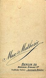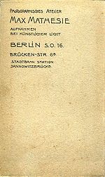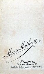 | Foto: | Dame Photographisches Atelier Max Mathesie, Berlin S.O. 16. |