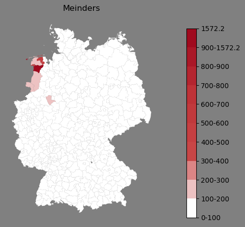 Absolute Verteilung des Namens Meinders (1890)Direkt zur Karte Absolute Verteilung des Namens "Meinders" um 1890 im damaligen Deutschen Reich Sie können die Karte innerhalb des Fensters zoomen und verschieben. |