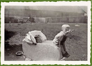vermutlich beim Bauer – Nähe Prökuls oder bereits auf der Flucht (mein verstorbener Bruder Manfred und ich)