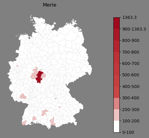 Absolute Verteilung des Namens Merle (1890)Direkt zur Karte Absolute Verteilung des Namens "Merle" um 1890 im damaligen Deutschen Reich Sie können die Karte innerhalb des Fensters zoomen und verschieben. |