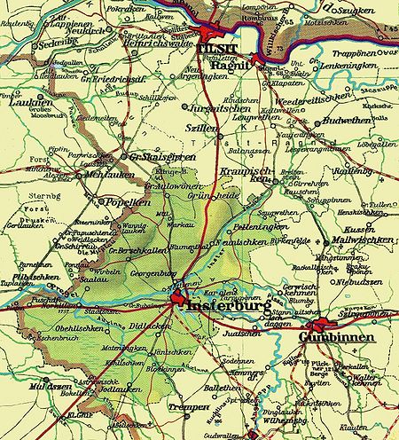 - Am 1.2.1818 wurde der Kreis Gerdauen gegründet. Zum Kreis Gerdauen gehörten die Kirchspiele Friedenberg, Gross Schönau und Filiale Lindenau, Assaunen, Muldzen, Gerdauen, Moltheinen, Momehnen, Nordenburg, Laggarben und Filiale Dietrichsdorf und Löwenstein. [1]