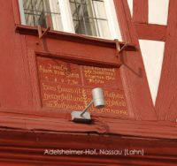 Der Adelsheimer Hof, erbaut 1607 und in der Zeit von 1912-1916 als Rathaus der Stadt Nassau eingerichtet, zählt zu den ältesten Häusern der Stadt. Das reich verzierte Fachwerkhaus zeigt folgende Inschrift: