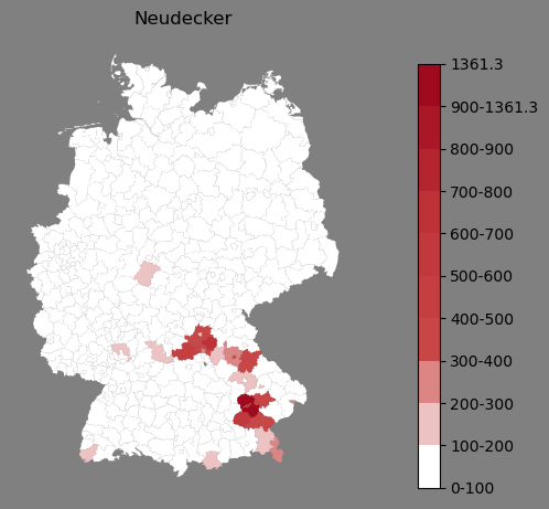 Absolute Verteilung des Namens Neudecker (1890)Direkt zur Karte Absolute Verteilung des Namens "Neudecker" um 1890 im damaligen Deutschen Reich Sie können die Karte innerhalb des Fensters zoomen und verschieben. |