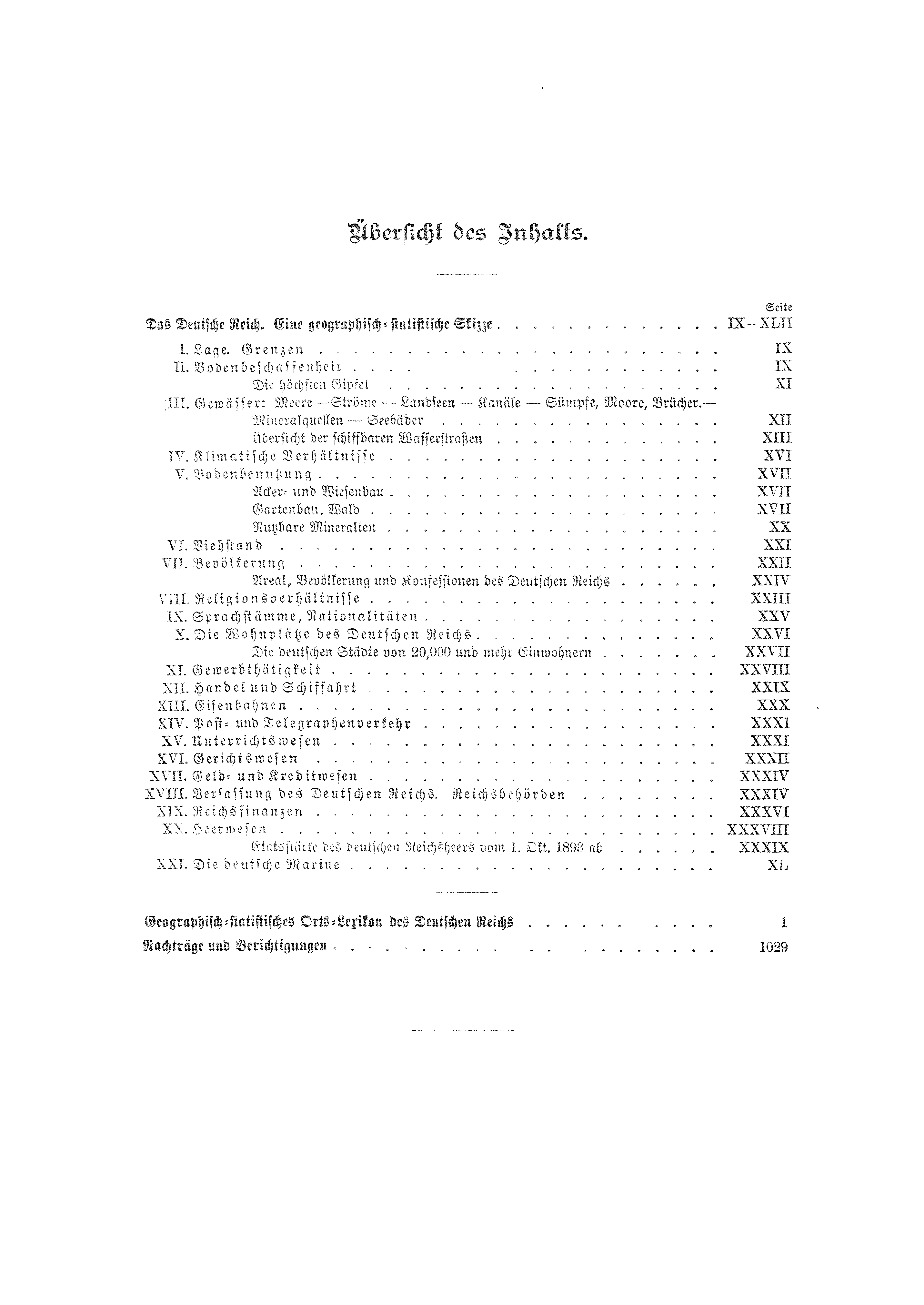 | Das Deutsche Reich. Eine geographisch-statistische Skizze | IX - XLII | |