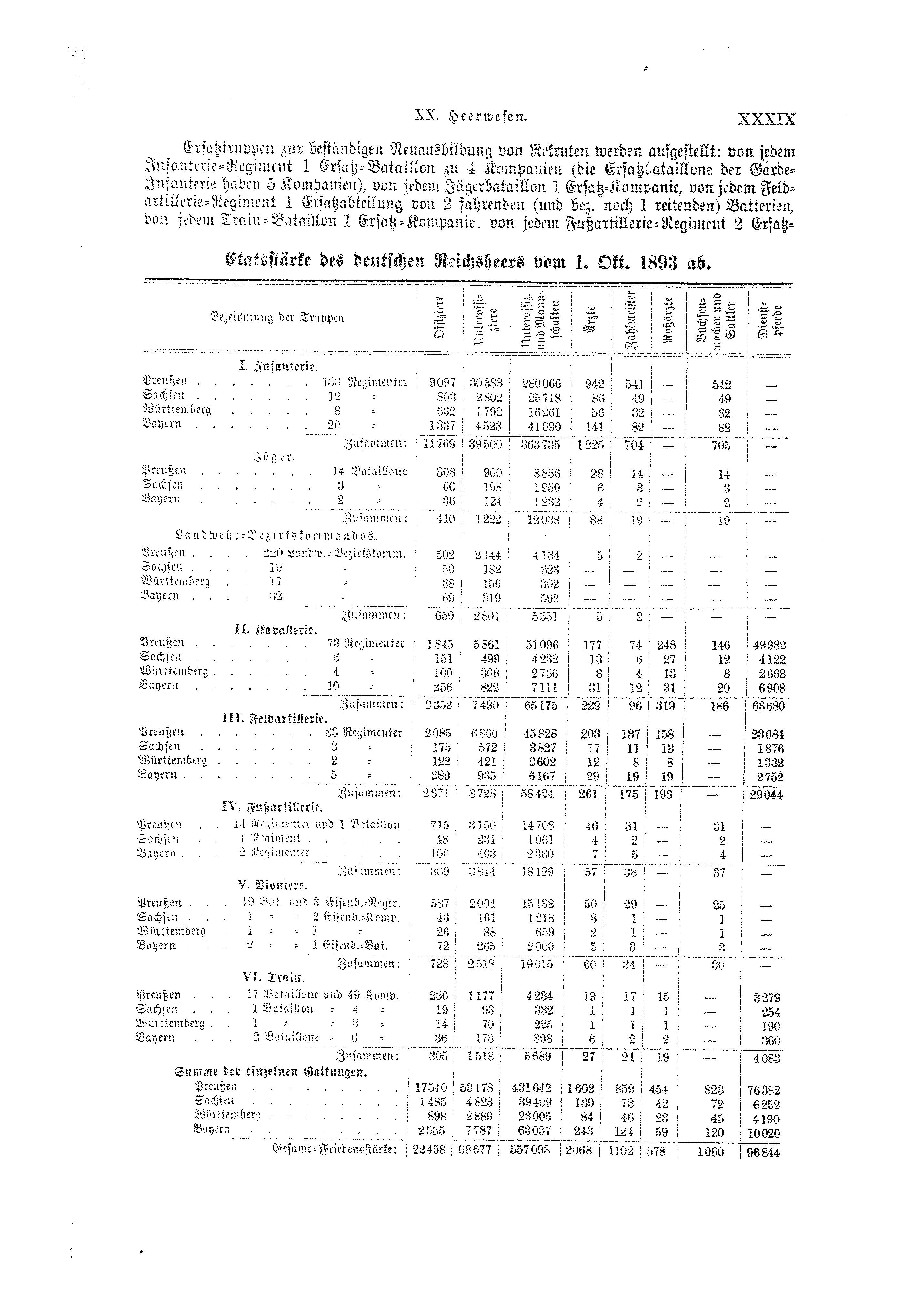 Etatsstärke des deutschen Reichsheeres vom 1. Okt. 1893 ab.