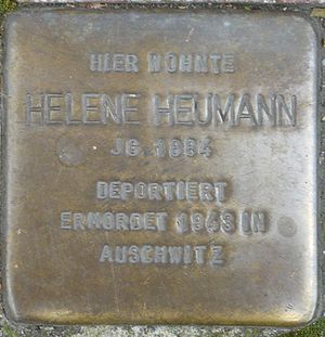 • Hier wohnte Helene Heumann, Jg. 1884, deportiert, ermordet 1943 in Auschwitz