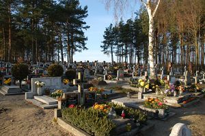 An der nördlichen Eingangsstraße zum Ort liegt der Friedhof.