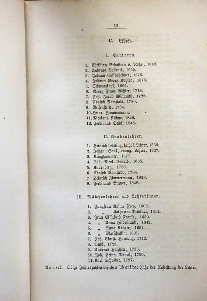 Anmerk. Obige Jahreszahlen beziehen sich auf das Jahr der Anstellung der Lehrer