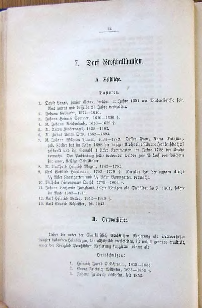 - Johann Benjamin Junghans, folgte Vorigem als Substitut im J. 1801, folgte im Amte 1802-1811.